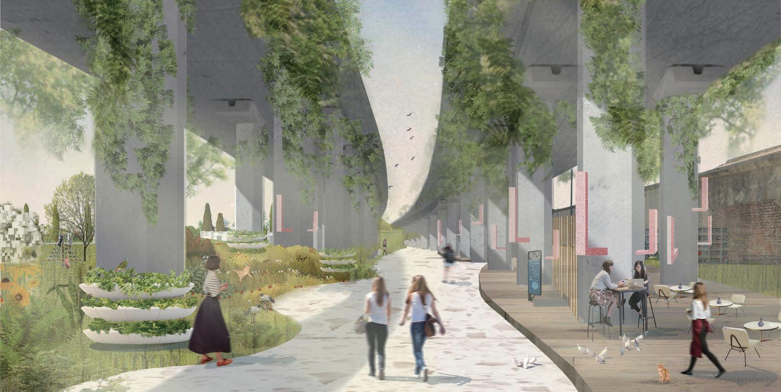 The area under the Grande Parco Forlanini highway is the main area we design and renovate, which is the city postcard in the west of Milan. From the perspective of the mayor and the surrounding residents, the main goal is to expand and renew the park, to provide greater bene ts for park users and future participants, and to create a more comfortable home.