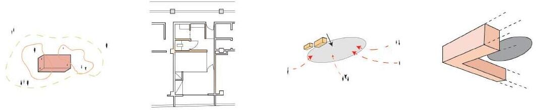 建築+αによって、 従来の機能的な建築に流れのある空間を差し込み、それらを媒介として人々が建築の空間の中で自 分の居場所を持ちつつ、緩やかに繋がる建築を目指します。