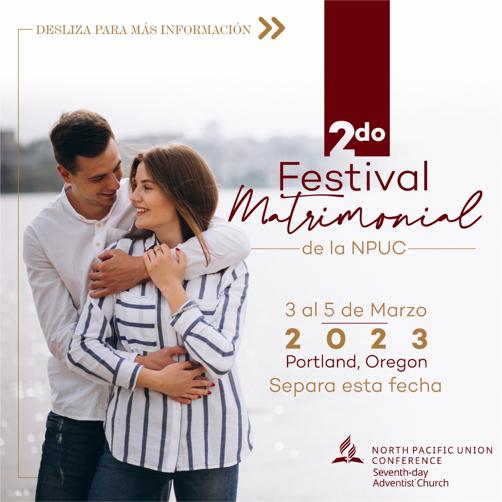 Matrimonial, de la North Pacific Union, del 3 al 5 de marzo de 2023, en Portland, Oregon. Mayor información con los directores de hogar y familia.