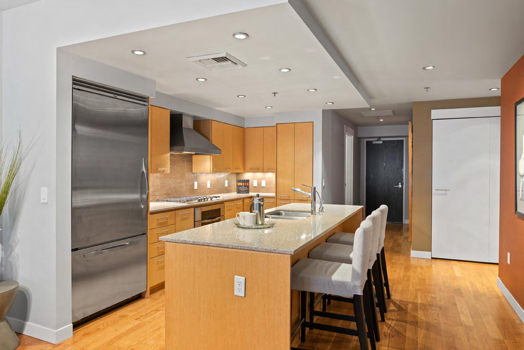 The Waterfront Pearl is known for its stunning design that exemplifies city living. Simplify your life without compromising your lifestyle. This spacious SE facing unit features an open floor plan with a wall of windows to be mesmerized by the city lights, river views, and water features.Quality concrete steel construction with amenities such as 24/7 Concierge, fitness center, and dry Sauna. Fabulous location in the heart of the city, with walkable access to galleries,parks,pubs,restaurants,and shopping..