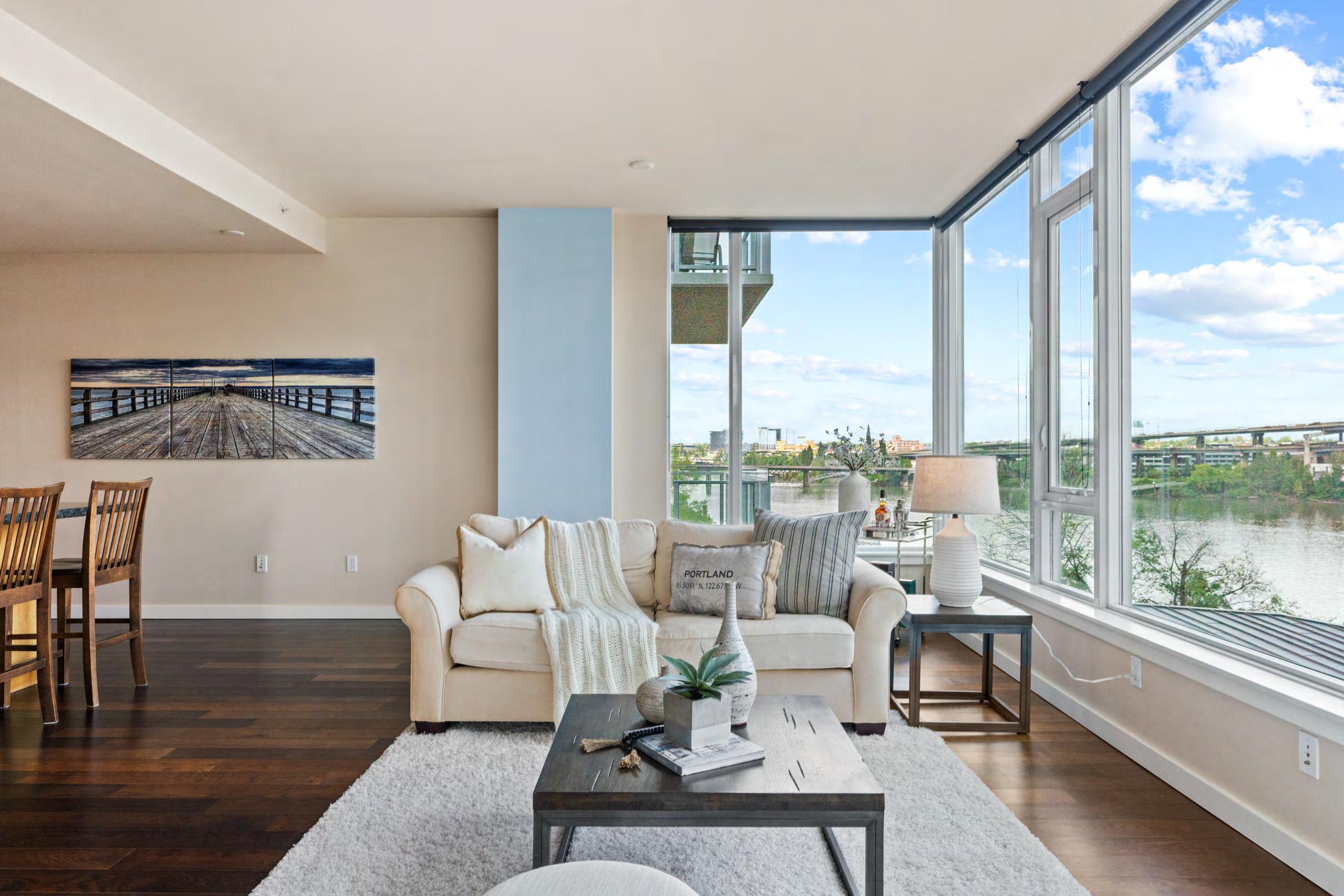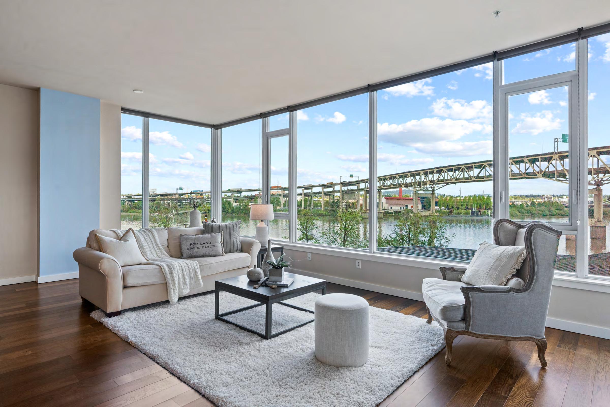 Breathtaking vistas of the City, Mt. Hood, Tillicum Bridge, and the Willamette River await. This coveted floor plan boasts two bedrooms plus a den, offering an elevated perspective above the river, with Mt. Hoodmajesticallyframing the Eastern view Indulge in this home's luxury, low-maintenance, and high-quality living, ensuring a lifestyle that pampers you each time you cross the threshold.Nestled steps away from a tranquil stretch of the Willamette yet conveniently situated near the heart of the city, this residence is the epitome of urban sophistication. Gleaming hardwood floors, luxurious granite countertops, and a gourmet kitchen exude elegance, while an oversized primary suite and a cozy gas fireplace elevate comfort to new heights.Beyondthe luxurious finishes, this homeis equippedwith practical features that enhance convenience and peace of mind. Underground deeded parking with elevator access, ultra-quiet concrete construction throughout, and on-site generator backup are just a few of the unseen amenities that make transitioning to the Lock andLeave Lifestyleeffortless.