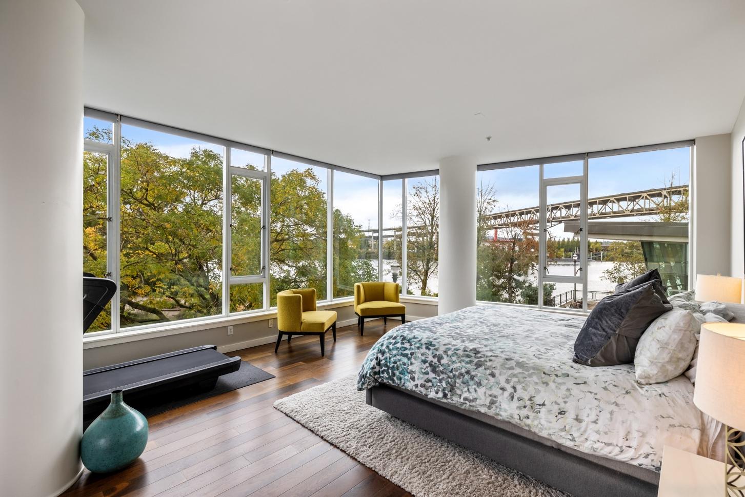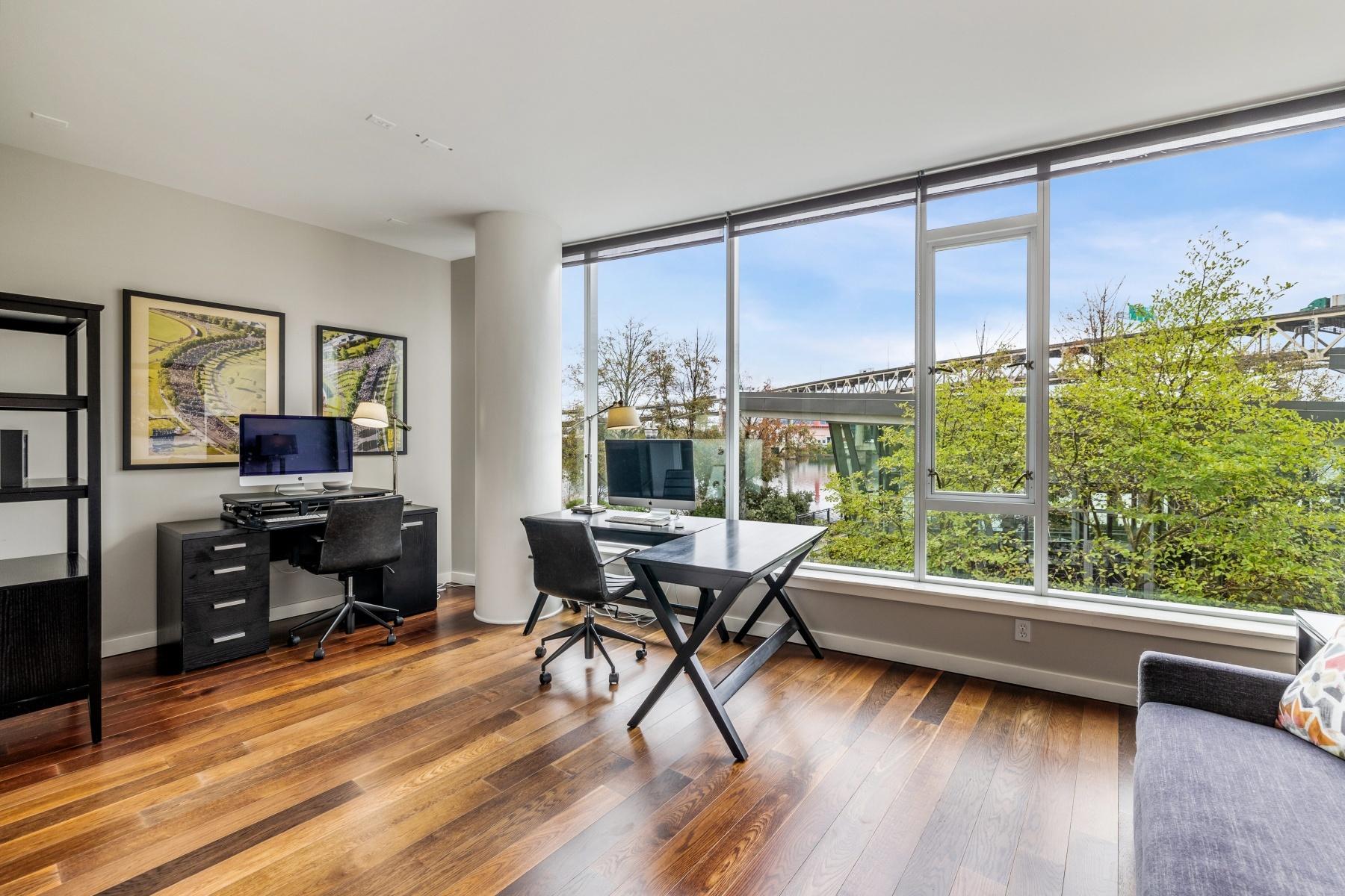 Experience sophisticated waterfront living in this rare corner townhome at The Strand, uniquely positioned near the Water's edge and the vibrant downtown Enjoy panoramic views of the Willamette River, iconic bridges, and the marina, with the waterfront steps away, perfect for walking out your front door With private exterior and interior entrances,access is seamless