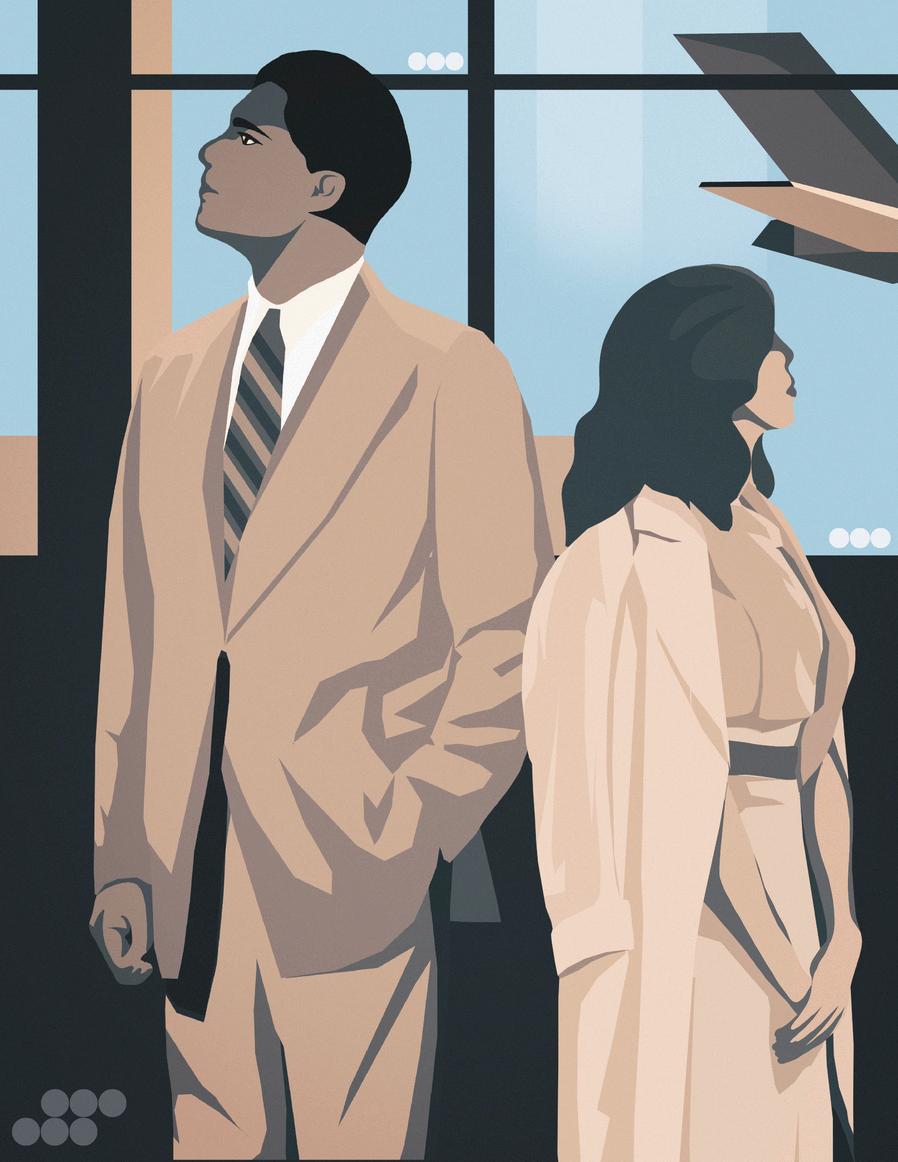 In Flight, this transitional space reflects the characters’ emotional states. Each person at the terminal faces their own crossroads: the Steward and Stewardess wrestle with their superficial relationship, a couple embarks on a tense journey to reignite their marriage, and the Controller surveys it all from her isolated perch. At the center is the Refugee, who lives permanently in this liminal state, trapped in the airport because he cannot enter the country but has nowhere else to go.