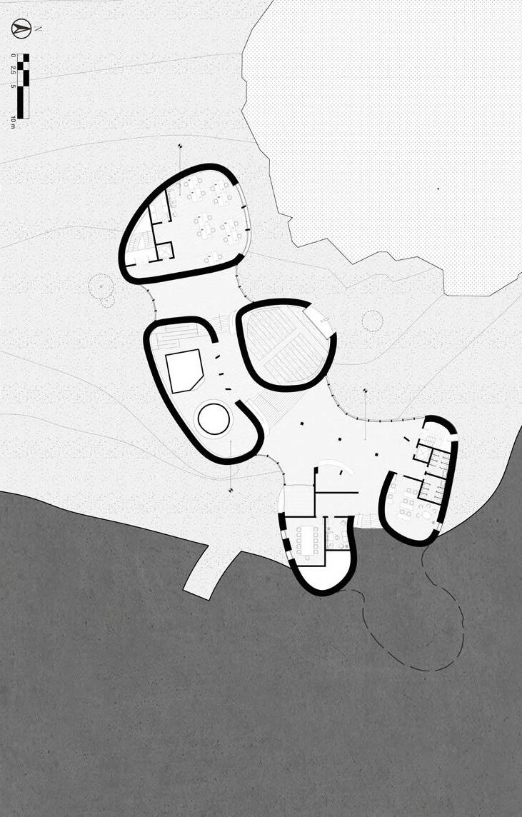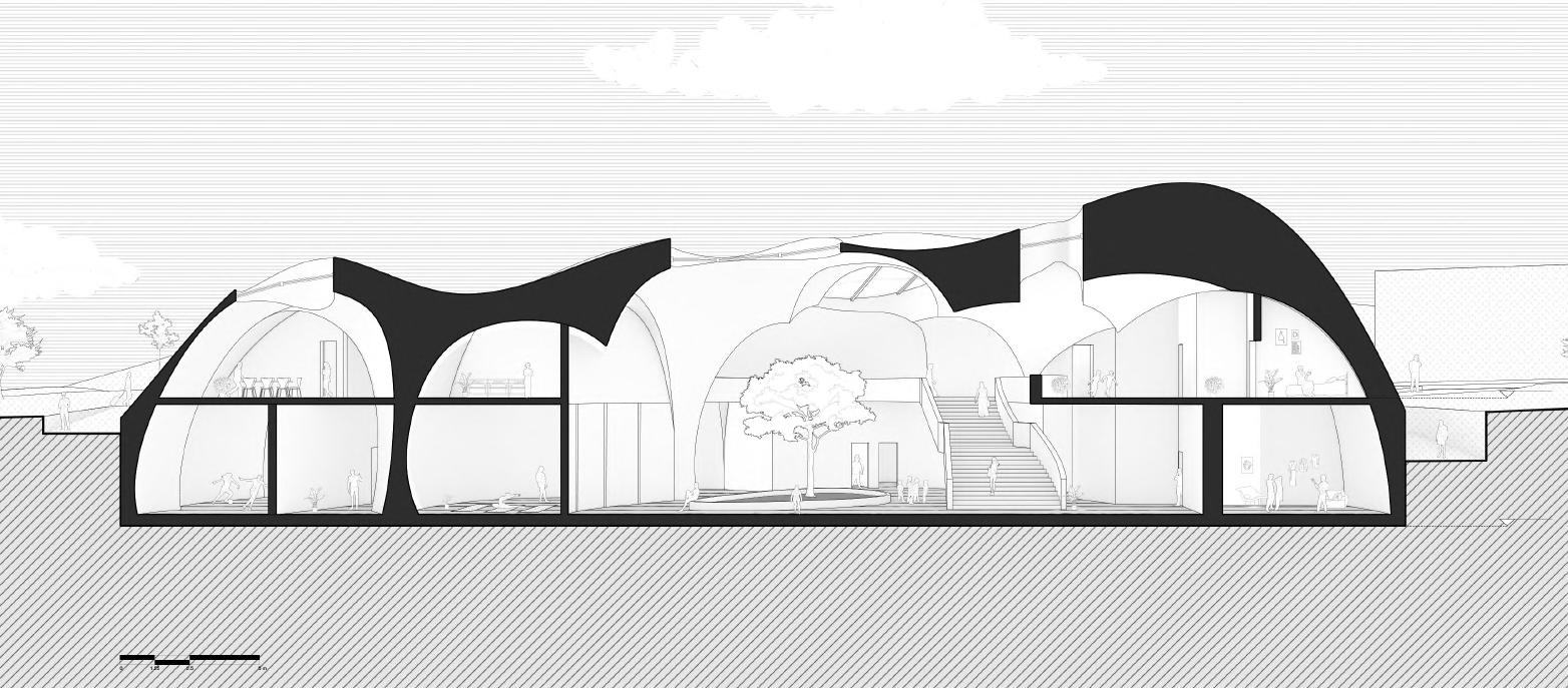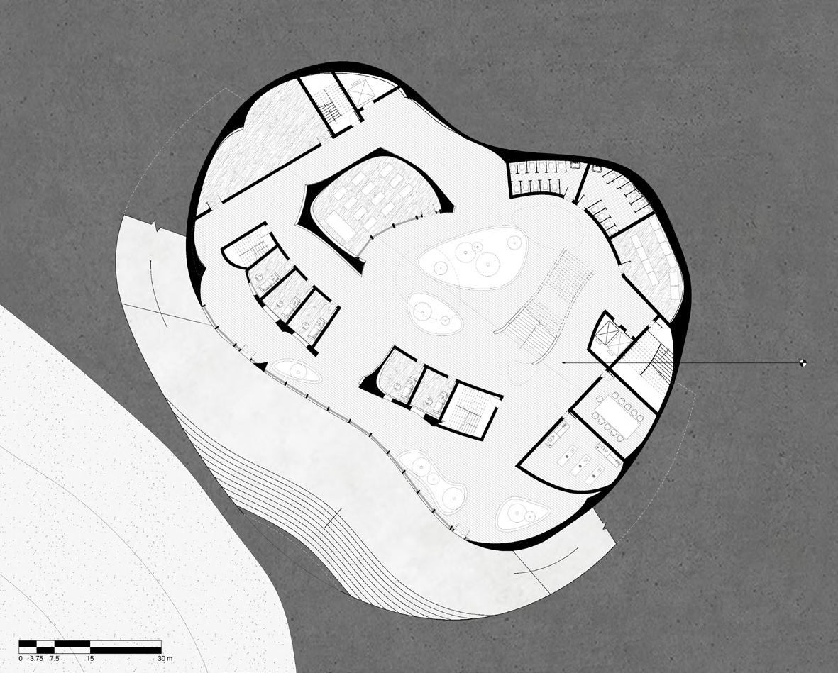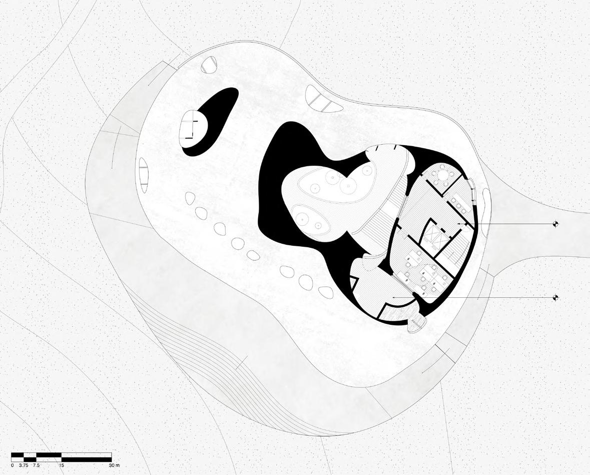2. Due to the lack of space to set up sufficient functions, two metres were dug down inside the building.