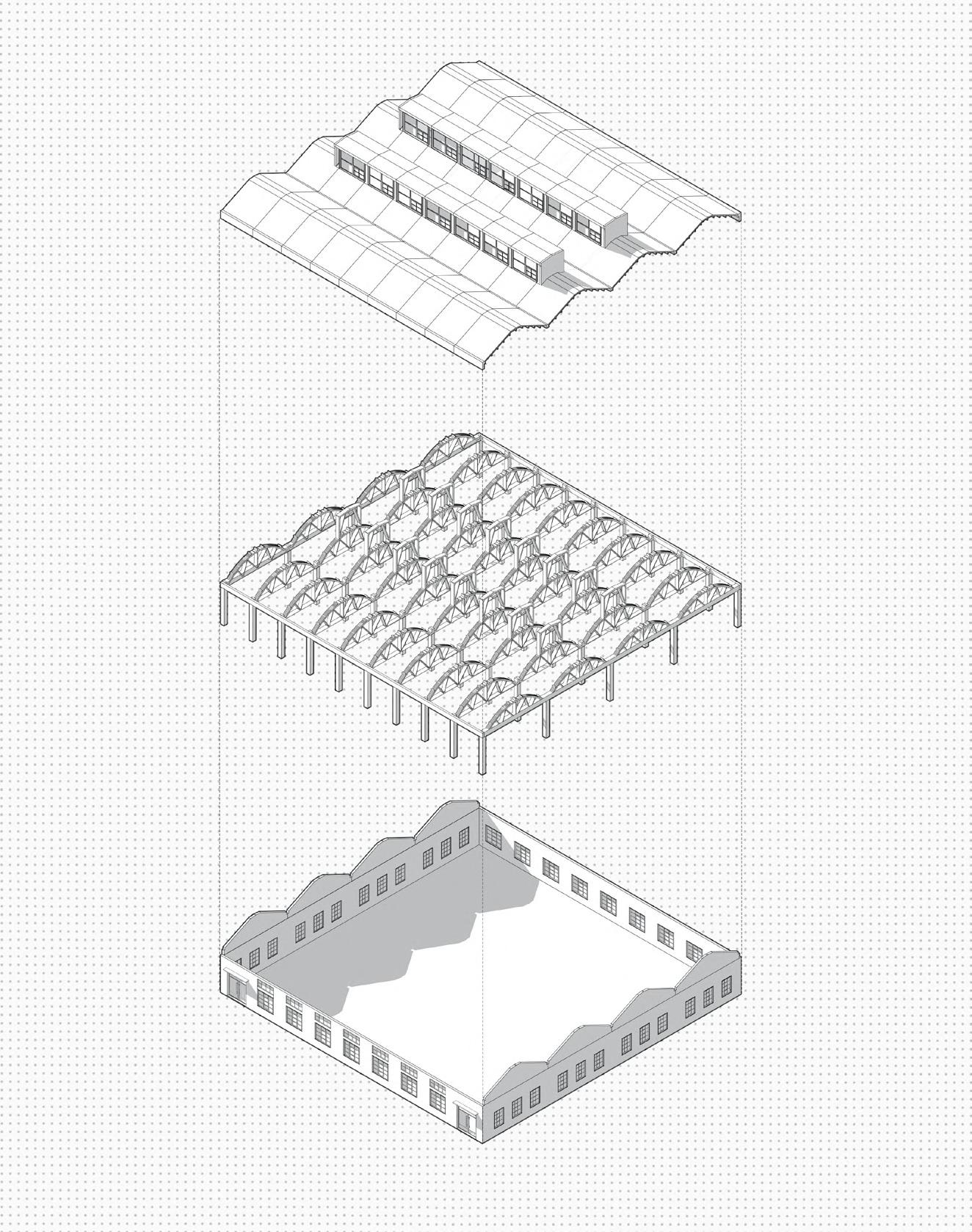 1. Remove the original metal structure and roof, and keep the original walls of the old factory (to preserve the historical memory of the Miles Factory).