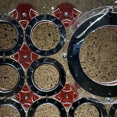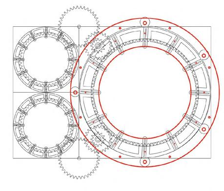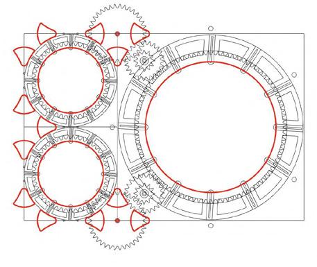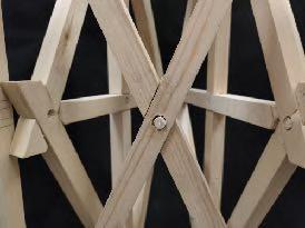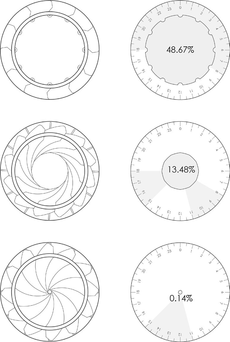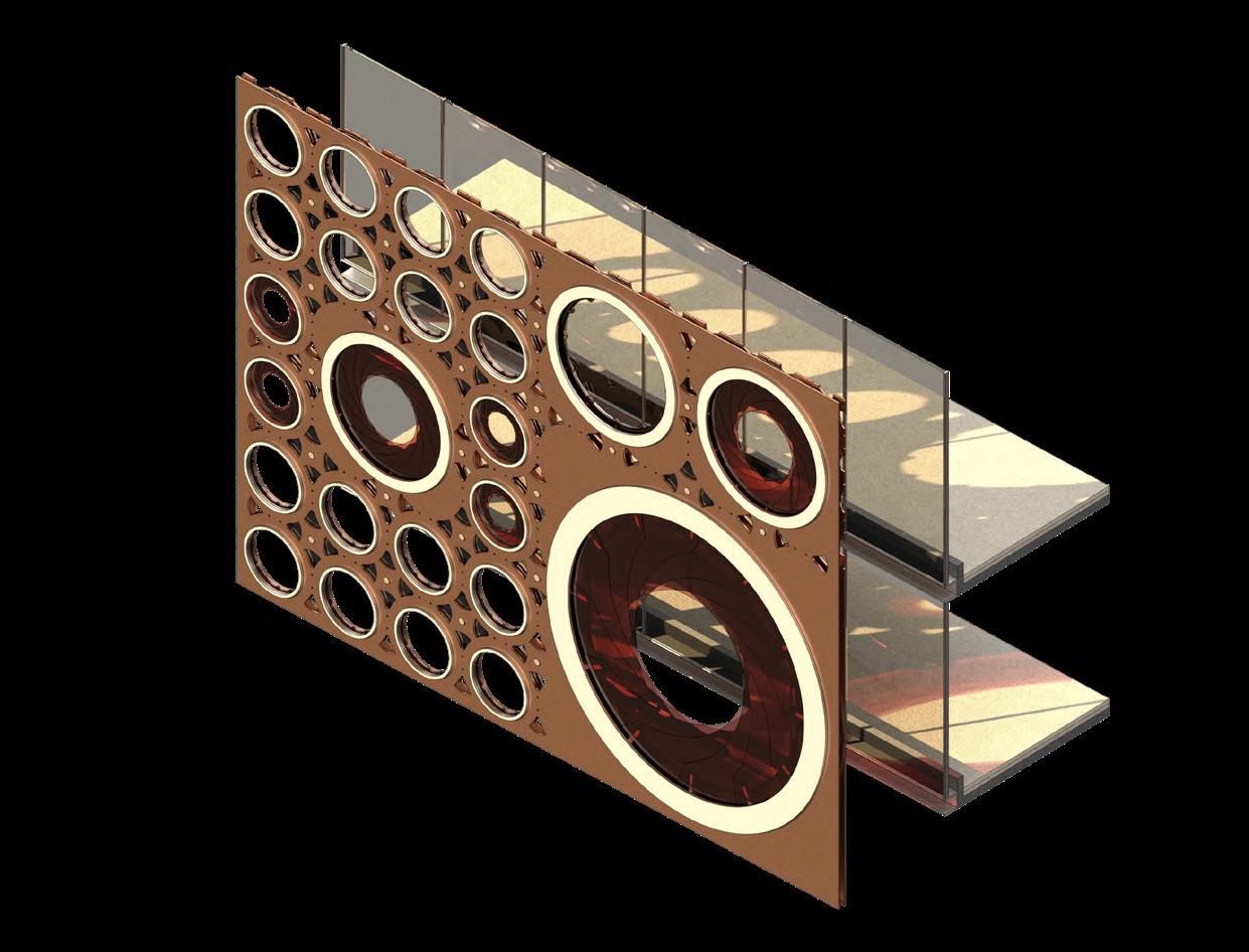 The internal and external cladding consists of stacked timber panels 25cm high. In this way, the hyperboloid form can be achieved while using wood materials.