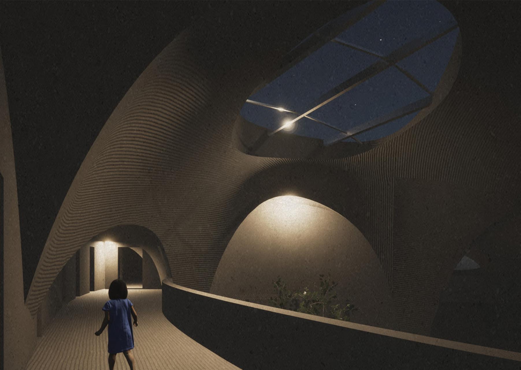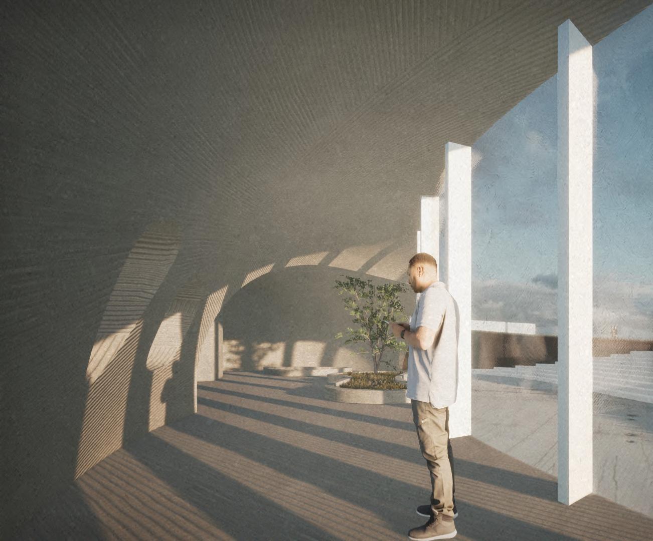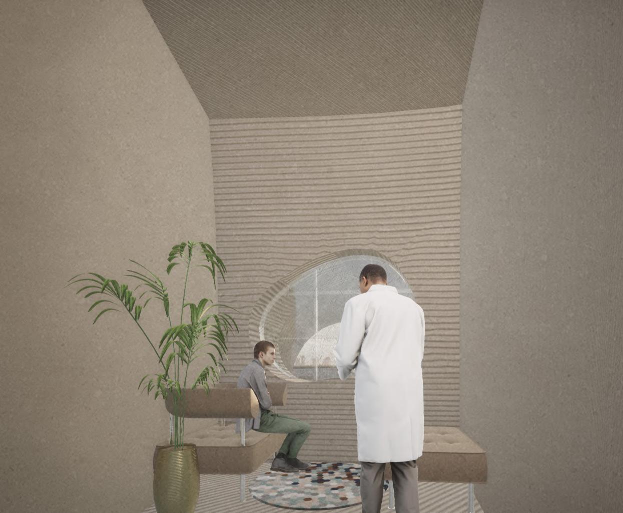 My design statement is to design healing spaces for social anxiety. It is based on the three methods of treating social anxiety (Exposure, Applied Relaxation, Cognitizuring). At the same time, I use the form of a cave as a design medium to give patients an instinctive sense of security from primitive times. In this way, the design aims to achieve the purpose of social anxiety people's symptoms.