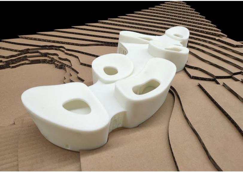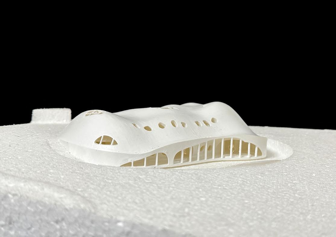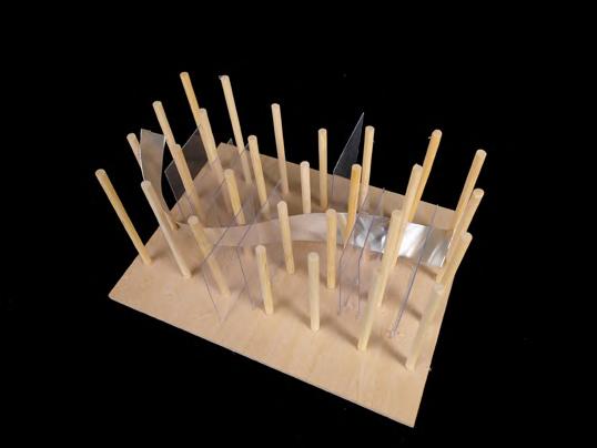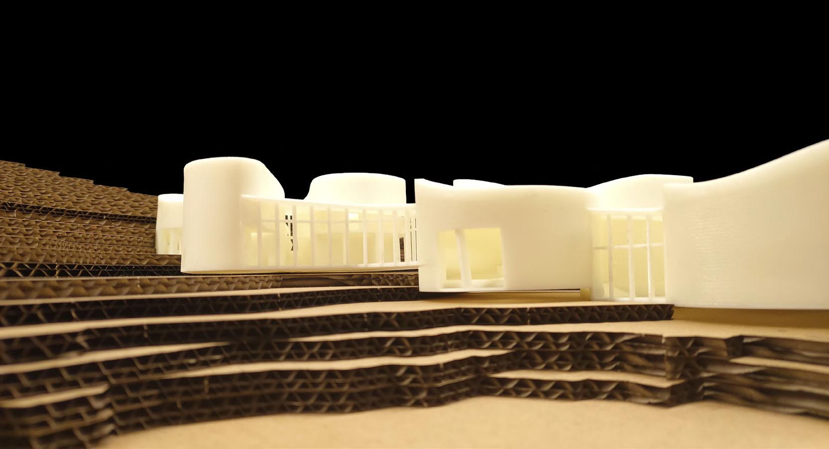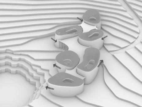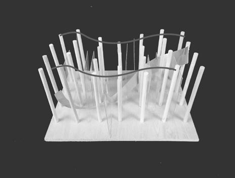 Researcher Musician and Public Test three architectural acoustic elements (shape, material, interior design) Get the Stage Theory Use Larger Spaces to Test the Results Get Data Medium Education Space Lab Material Storage Room Fabrication Data Center Office Lounge Meeting Room for Researcher Dinning Hall The Performance Space Small Education Space Reception Area Waiting Area Meeting Room for Musician Communication Space for Musician Communication Space for Public Play Music Two ways to judge 1. Electronic acoustic test 2. Human ear test Performance Education Communication Larger Performance Space Extraction of sonic shape lines from conceptual models. Lifting according to the terrain. Extracting the recessed arc element from the part of the conceptual model that represents the form. The elements that gradually change the angle of inclination as well as the direction are extracted from the metal ribbon section of the conceptual model. Applying both of these to the building, the top is recessed inwards and the angle and direction of the sloping facade mimics that of a ribbon. The topography of the extraction site and the rock arrangement thus influence the course of the curve. Extraction of the mesh in the conceptual model. Lining up function blocks using grids and curve orientation. Material Storage Room Fabrication Lounge Dinning Hall Waiting Area Office The Performance Space Meeting Room for Musician Medium Education Space Small Education Space Data Center Lab Meeting Room for Researcher Public Private Lento Piano Research Education