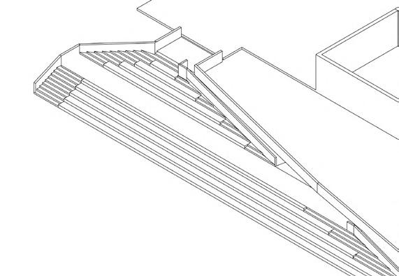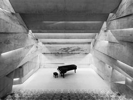 Ceiling By mixing the concrete with other materials and separating them after pouring, the building walls produce a special texture. The skin contributes to the building's acoustic performance while making a strong visual impact. Tensioned metal wires were chosen for the three facades of the space. The white wire adjustable partition structure on the stage not only provides a certain acoustic effect but also allows the layout of the space to be adapted to the needs of the use.
