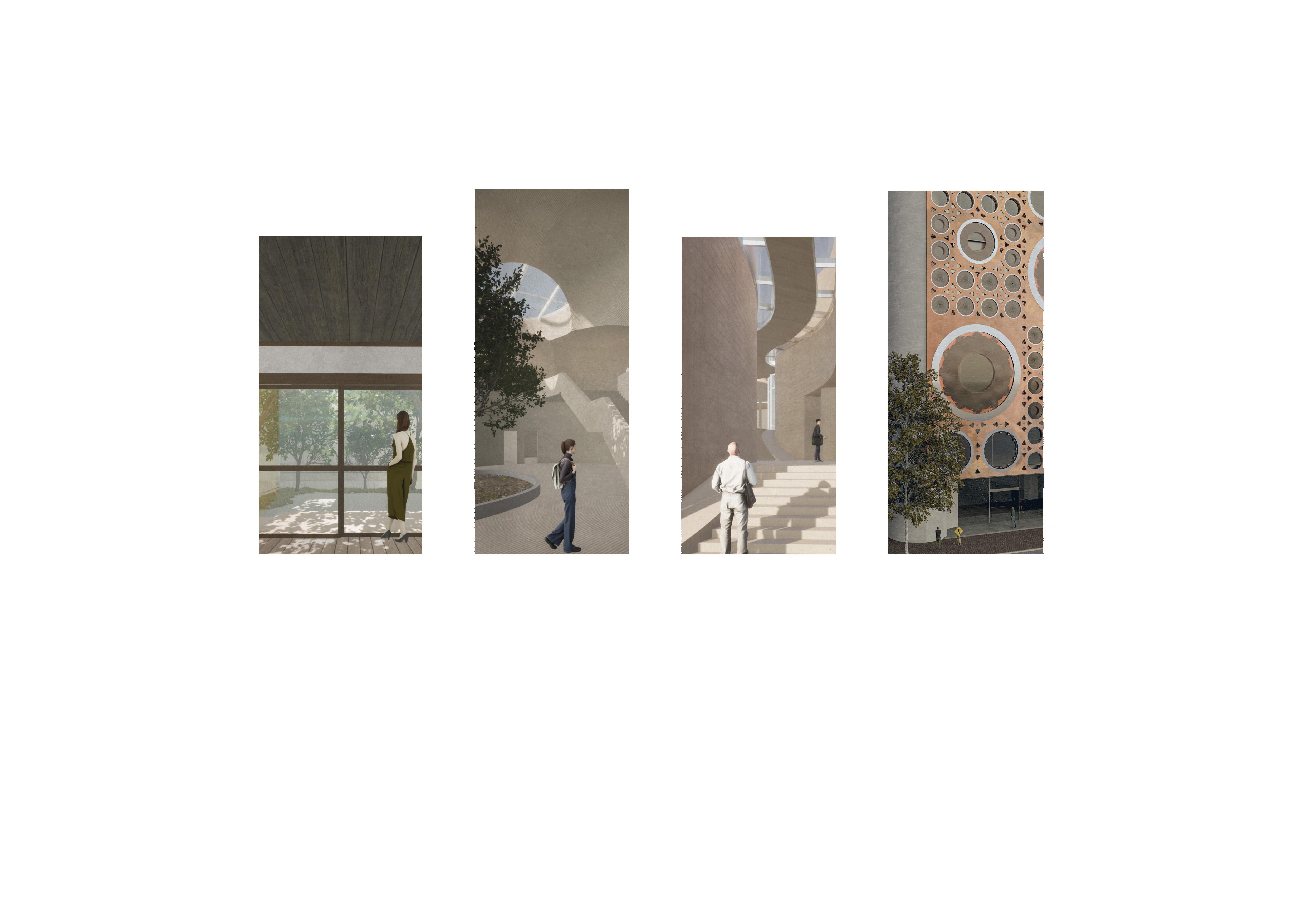 Therefore, the concept of transport space is taken as the core of spatial design to connect the functions.
