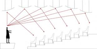 to develop a quantitative methodology for controlling the shape of the interior space, the ceiling design and the materials used to make the sound in the space controllable. The main body is made using pre-cast concrete technology, the concrete inside the concert hall is untreated, plain concrete, and these uneven surfaces help to absorb the mids and highs produced during the performance. The ceiling and limestone veneer are covered with a glued wood panel that absorbs sound while providing good reflection to ensure the best possible listening experience.