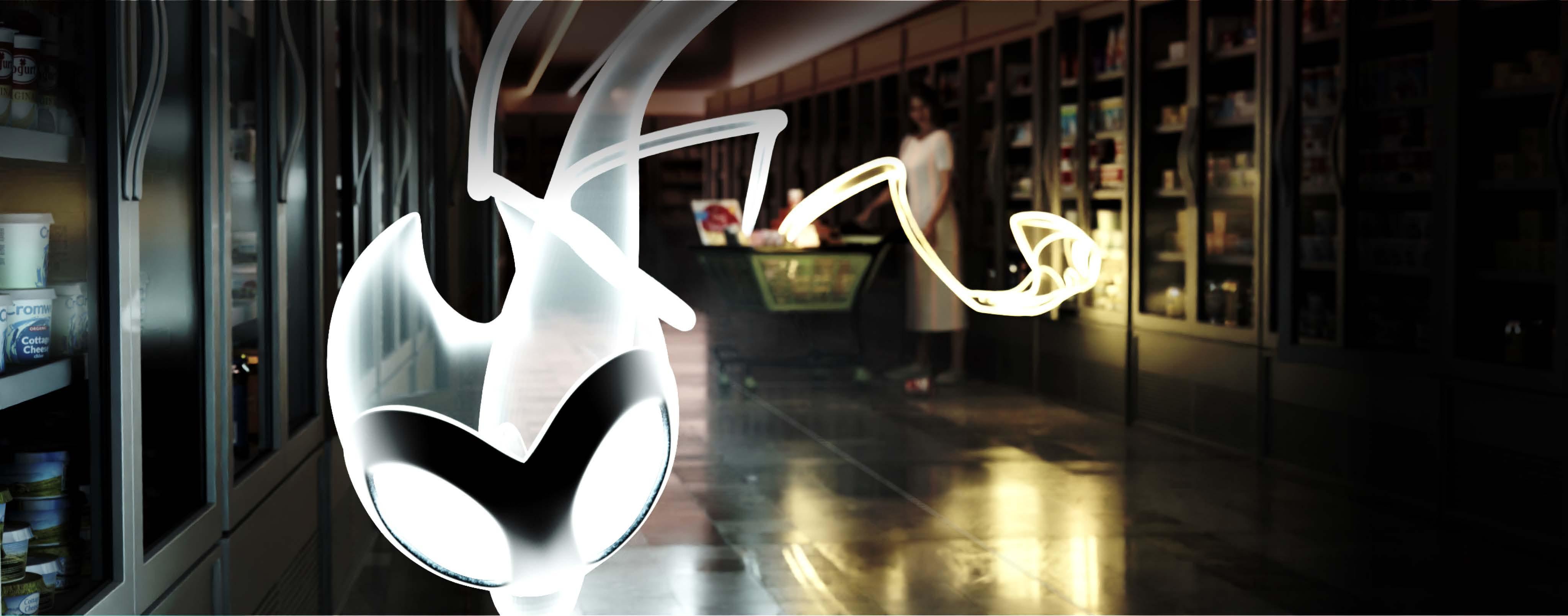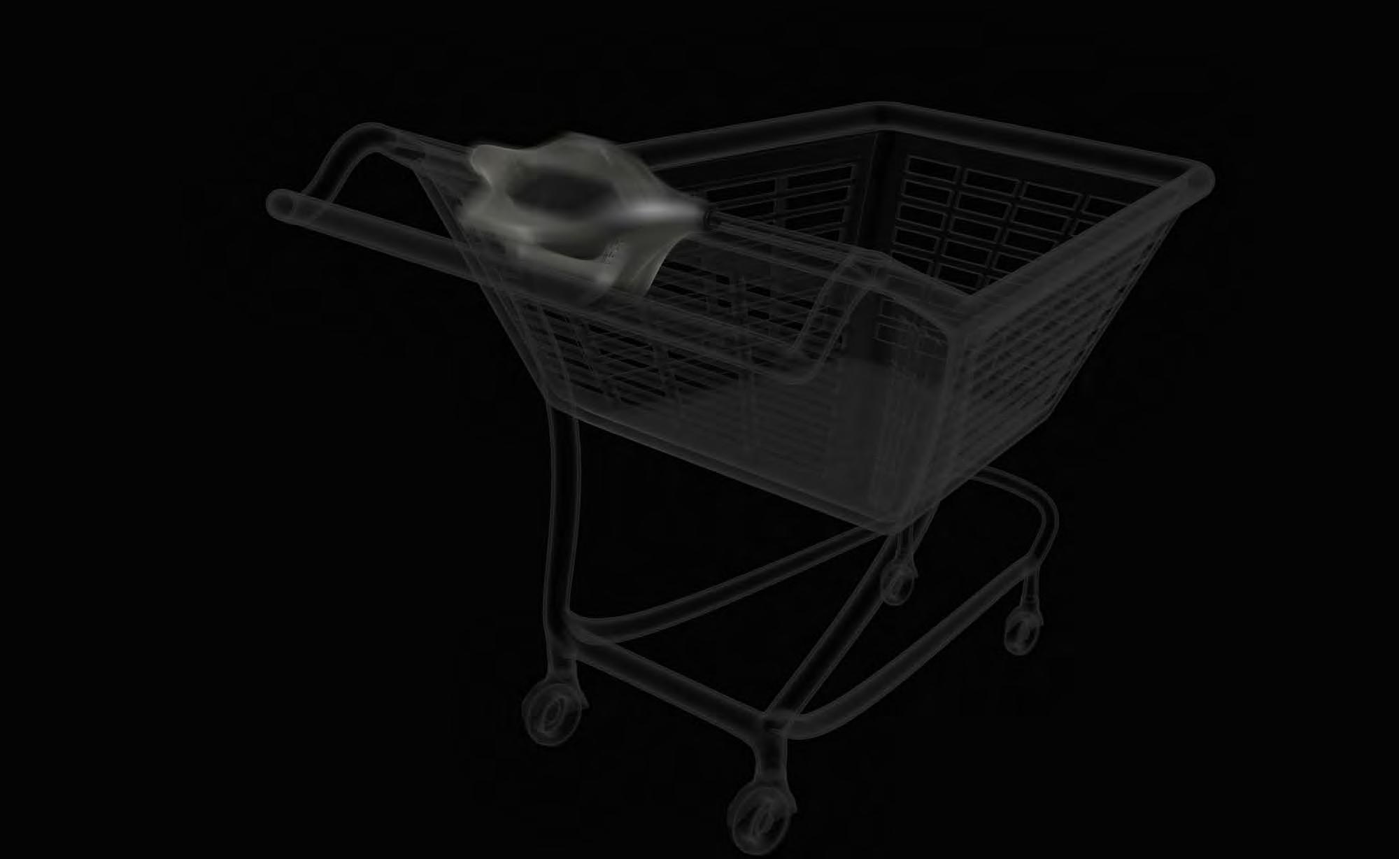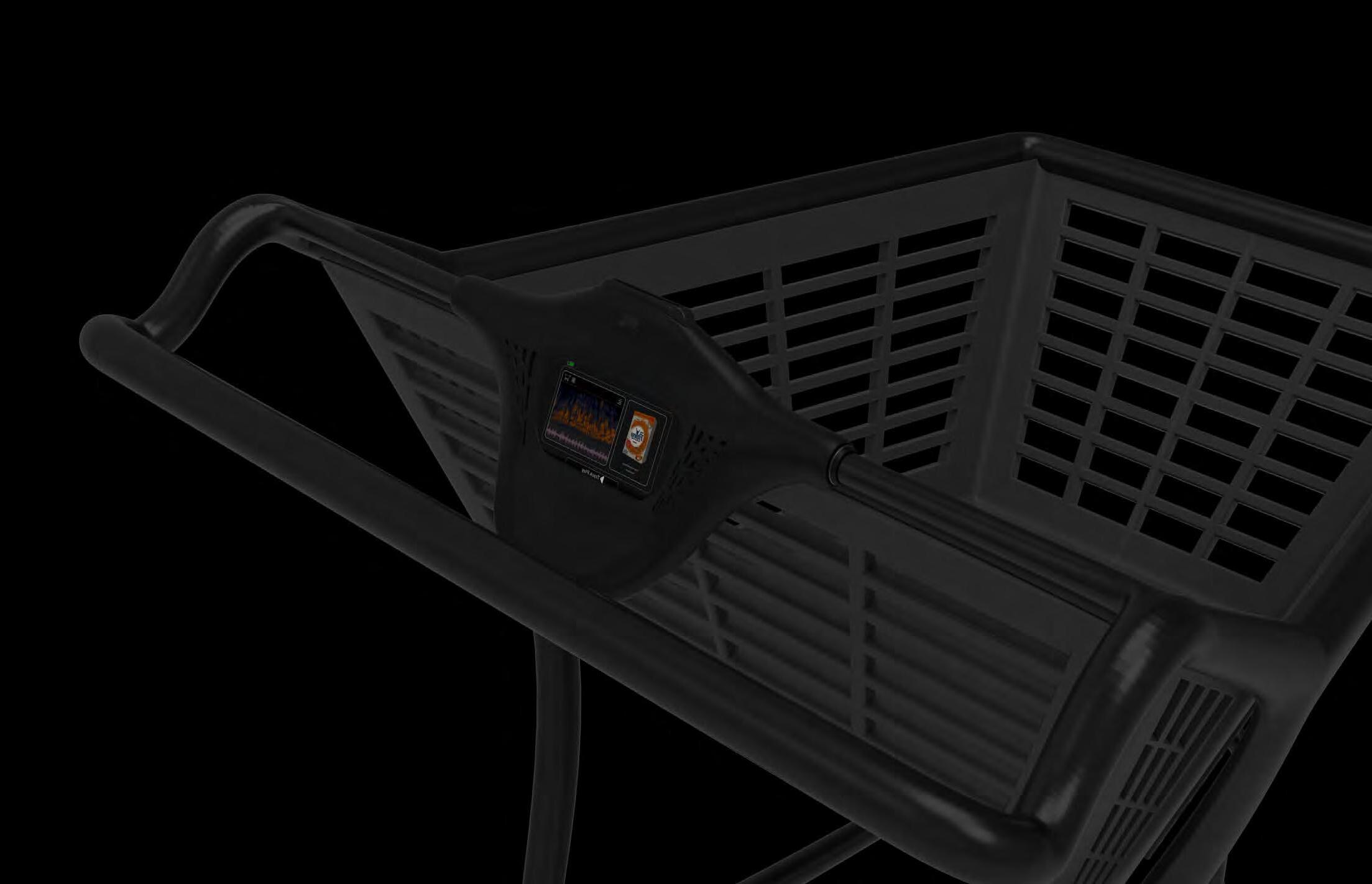 While the user is checking out, the shopping cart and smart pad are scanned and a music track is played
