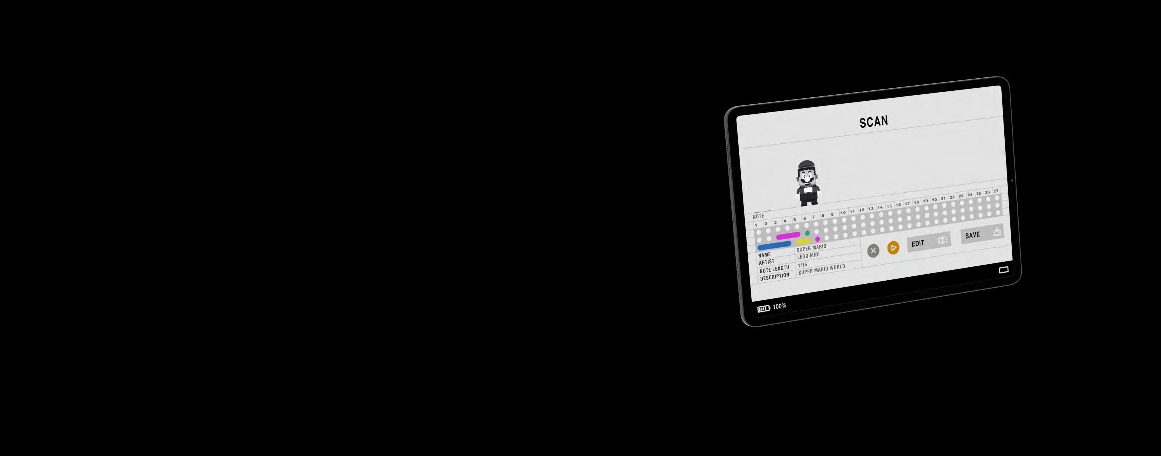 place bricks on the midi scanner and identify them in scan mode. Because although Mario can judge the color and the up and down position of the color, it does not have a spatial radar sensor. Therefore, the position and length of the brick need to be manually edited by the player in the recognition.