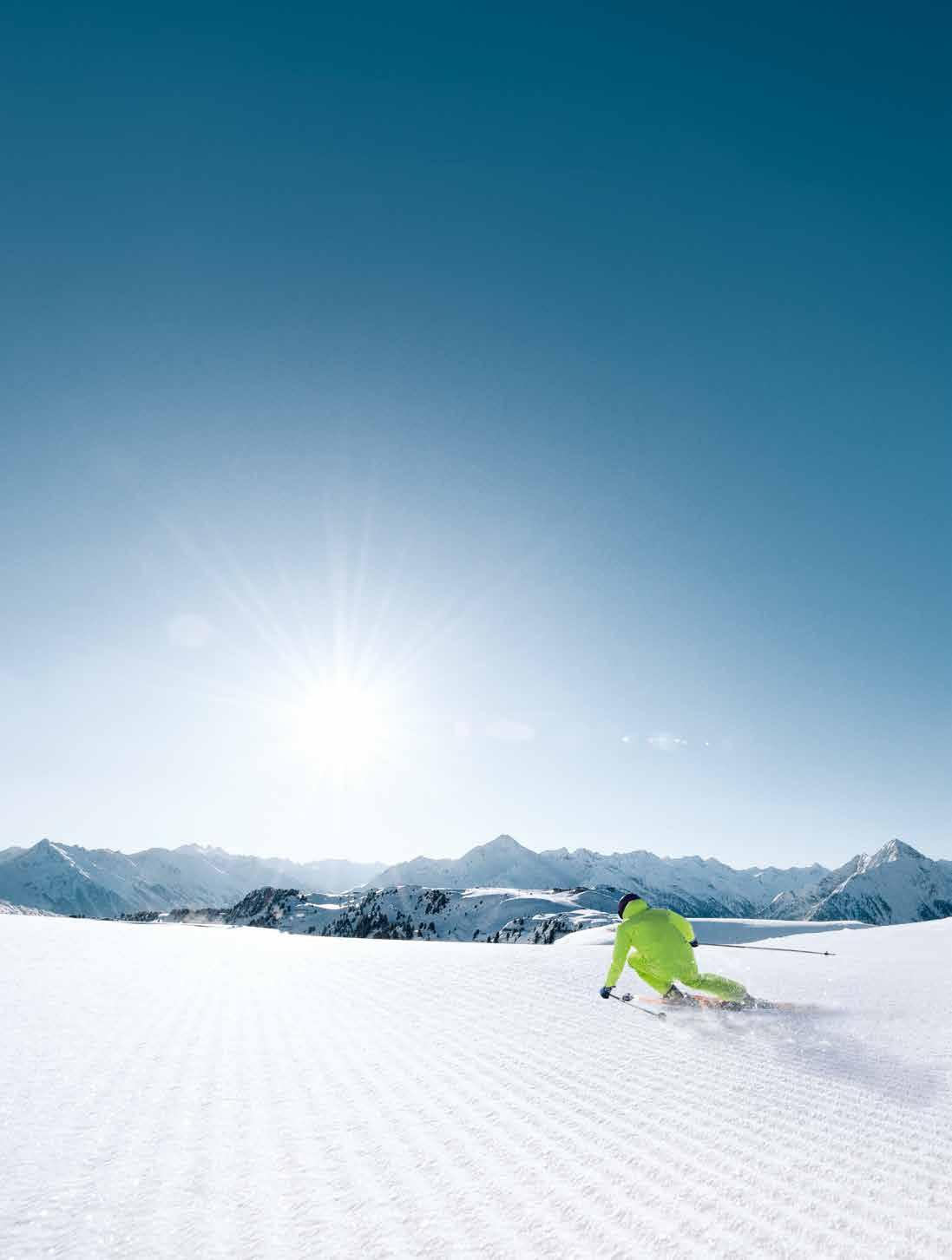 In the heart of Zillertal lies Zell am Ziller, the perfect starting point for varied ski days throughout the valley. Gerlos is situated at 1,246 metres — snow-sure and idyllic. The small ski area of Gerlosstein offers families and connoisseurs fun on the slopes, free snowtubing on specially prepared tracks and a seven-kilometrelong toboggan run, which is floodlit until one o’clock in the morning, with a cosy stop for refreshments.