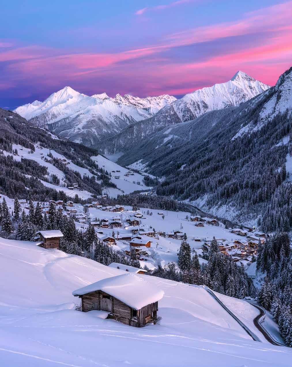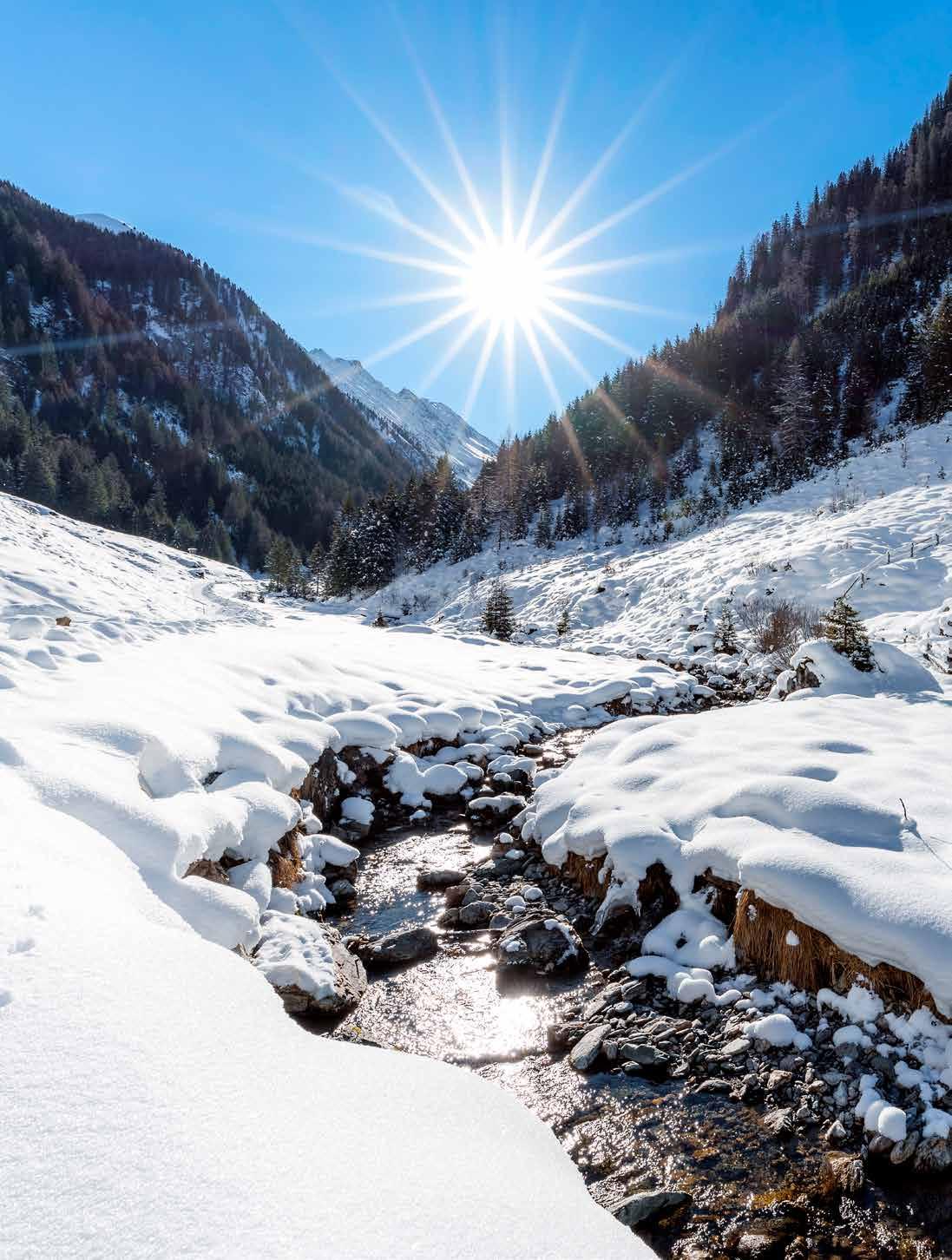 When the sun kisses the snow-covered mountains awake, the trees are wrapped in white cloaks and the lake rests amidst the peaks –then we experience fabulous moments in Zillertal.