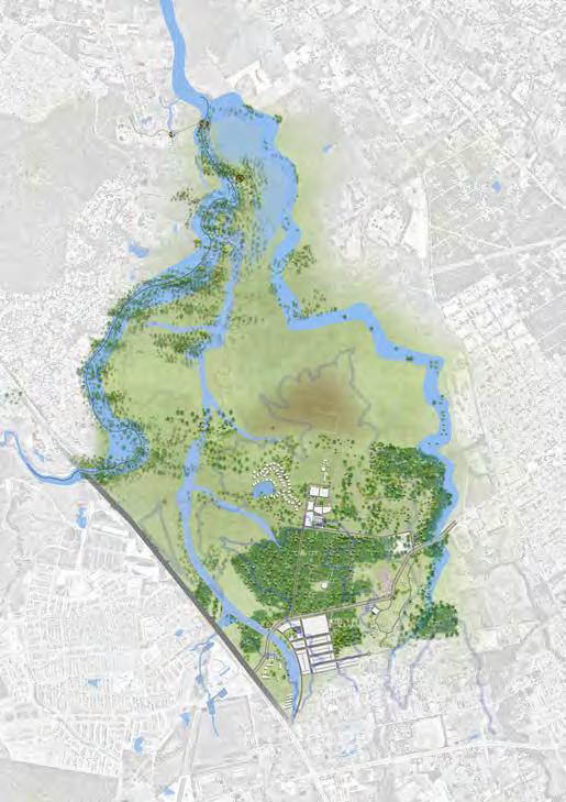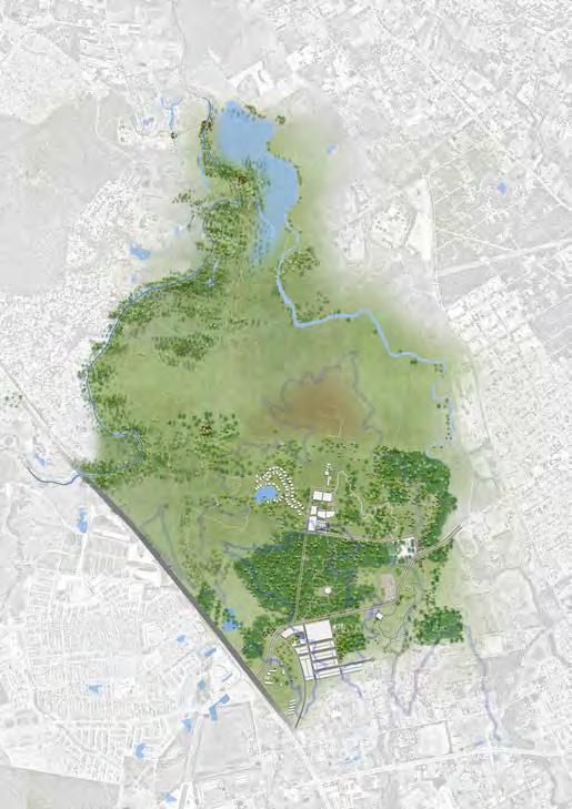 "To connect green and grey patches, building road systems and corridors in order to turn angus into a useable & accessible informal parkland for neighbourhoods. The layer of cool tree canopy cover will integrate this place into a liveable and recreational space for both human and non-human. Transition angus into resilient landscape by responding to extreme weather condition."