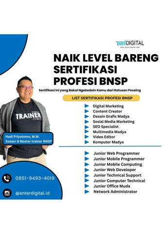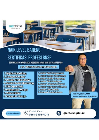 "UPGRADE SKILL! HUB: 0851-9493-4019 , Gambar Sertifikasi Digital Marketing Jembrana Langsung ORDER KLIK WA http://wa.me/6285194934019 , Gambar Sertifikasi Digital Marketing Jembrana, Gambar Sertifikasi Digital Marketing Jembrana, Sistem Sertifikasi Online Isp Pesisir Barat, Sertifikasi Online Gratis Pringsewu, Sertifikasi Online Gratis Indonesia Tanggamus, Sertifikasi Online Tulang Bawang Barat, Sertifikasi Digital Marketing Online Tulangbawang, Sertifikasi Microsoft Office Online Gratis Way Kanan, Sertifikasi Microsoft Office Online Bandar Lampung Tingkatkan Kredibilitas Karier Anda dengan Sertifikat Kompetensi Resmi Berstandar Nasional! Dapatkan sertifikasi keahlian kerja yang diakui dunia industri dan mendukung karier Anda secara profesional. Manfaat Sertifikasi: ?? Bukti sah kompetensi Anda ?? Diakui oleh industri & instansi pemerintah ?? Dapat digunakan untuk SKPI, syarat kerja, dan promosi jabatan ?? Berlaku seumur hidup ?? Tersedia skema bidang populer: marketing, desain, IT, layanan pelanggan Siapa yang Cocok Mengikuti? - Mahasiswa tingkat akhir - Fresh graduate yang ingin lebih unggul - Profesional yang ingin naik jabatan - Freelancer & pekerja lepas Pilih Bidang Sertifikasimu: ??Digital Marketing ??Desain Grafis ??Content Creator ??SEO Specialyst ??Komputer & Office ??Sertifikasi Junior Web Programmer ??Sertifikasi Junior Mobile Programmer DAN MASIH BANYAK LAGI! Diselenggarakan oleh Lembaga Sertifikasi Profesi (LSP) resmi berlisensi BNSP β€” sesuai standar UU No. 13 Tahun 2003 Tentang Ketenagakerjaan. Daftar Sekarang!! Klik untuk Konsultasi via WhatsApp https://wa.me/6285194934019 Whatsapp : 0851-9493-4019 Instagram : enterdigital.id website : https://enterdigital.id/ Alamat : Jl. Cannosa No.74, RT.02/RW.04, Jurang Mangu Timur, Kec. Pondok Aren, Kota Tangerang Selatan