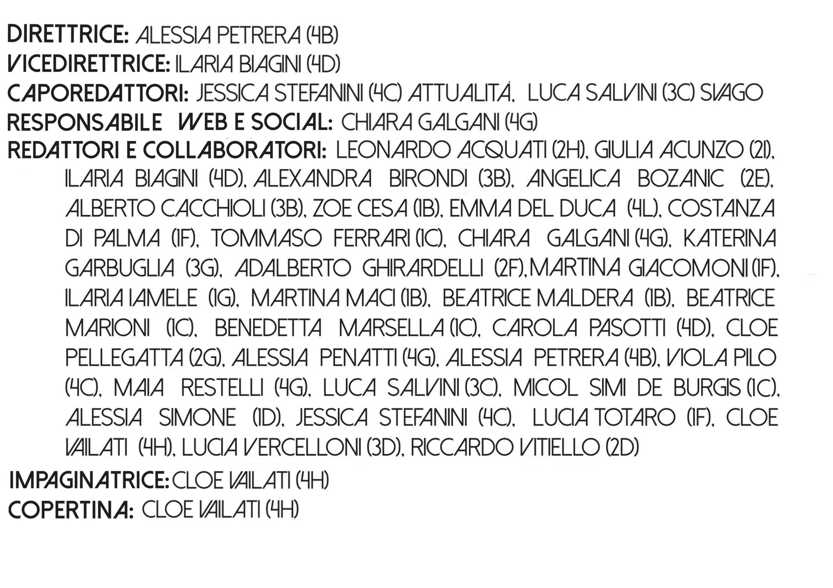 Mentre ci prepariamo a lasciare la scuola, fuori il mondo si muove e spesso lo fa in modo disordinato, improvviso. I referendum alle porte ci ricordano che c'è ancora tanto da migliorare, che il nostro ruolo può essere fondamentale e che partecipare, oltre che un diritto è anche una responsabilità. Le tensioni internazionali e le guerre che ci sembrano cosi lontane dimostrano invece quanto la pace sia una cosa fragile e quanto dobbiamo ritenerci fortunati. Questa situazione di instabilità ci spinge spesso a porci delle domande a cui a volte non sappiamo rispondere Una cosa