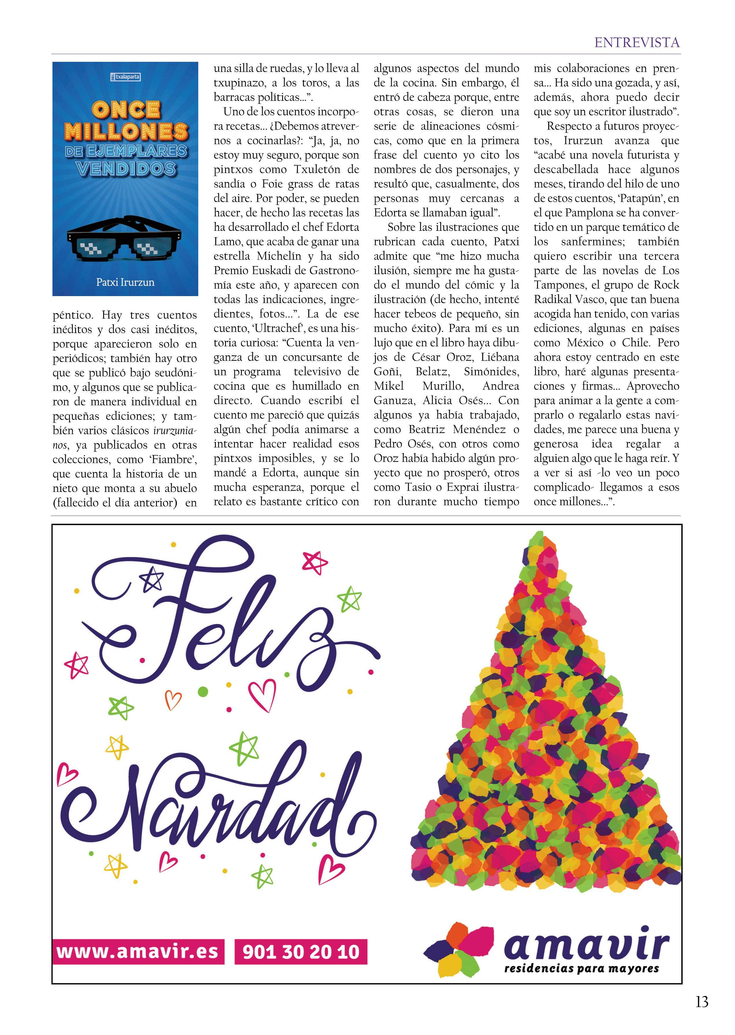 “‘Once millones de ejemplares vendidos’ es una colección de relatos; todos ellos tienen en común el humor, en diferentes grados. Hay historias gamberras, tragicómicas, descacharrantes, brutas, tiernas... La literatura de humor está muy denostada, se considera un género menor, pero a mí me parece que el humor es algo muy serio , hay pocas cosas más importantes que reírse o pasar un buen rato. A eso aspiramos todos, a ser felices, y eso es lo que ofrece este libro, una lectura que dibuje una sonrisa o arranque una carcajada, aunque los relatos también contengan una visión crítica de la realidad social”, arranca Patxi.