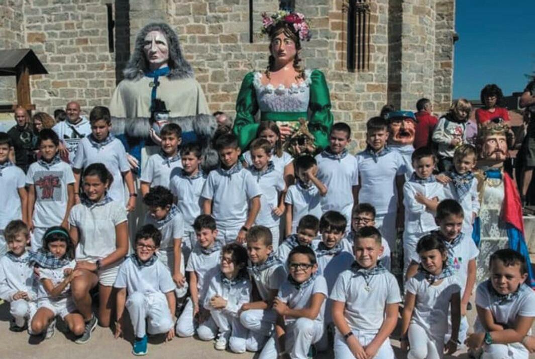 A las 12, el pueblo viejo acogió uno de los momentos más esperados de la jornada: la presentación de las nuevas figuras de la comparsa txiki. Acto seguido, la propia com-