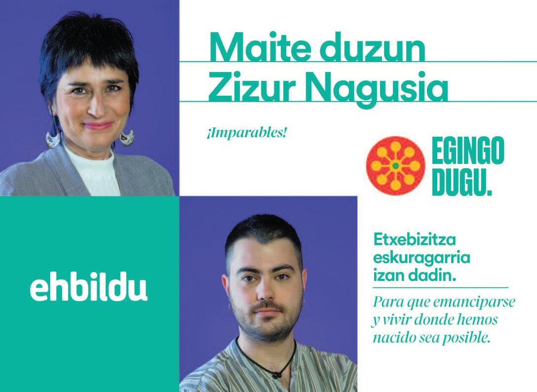 Como ellos mismos reconocen, somos el adversario a batir para UPN y PP. Pero sabemos que en estas elecciones EH Bildu va a ser determinante. Y los y las zizurtarras tienen que saber que, si de EH Bildu depende, UPN no va a gobernar este Ayuntamiento. A partir de ahí, somos claros: queremos avanzar en el cambio político iniciado en 2015, en políticas más participativas, ecosociales e igualitarias. Sabemos que tendremos que pactar con otros partidos progresistas, pero sabemos también que sólo si somos la primera fuerza entre los partidos del cambio podremos profundizar en políticas de izquierdas.