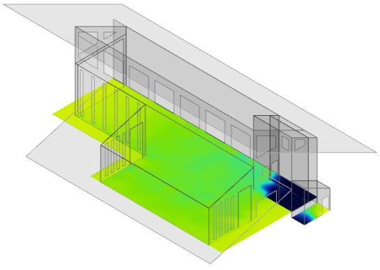 9mm thick water-resistant Fibrous Plaster ceiling (C2) with strip lighting and cable raceways to manufacturer's detail