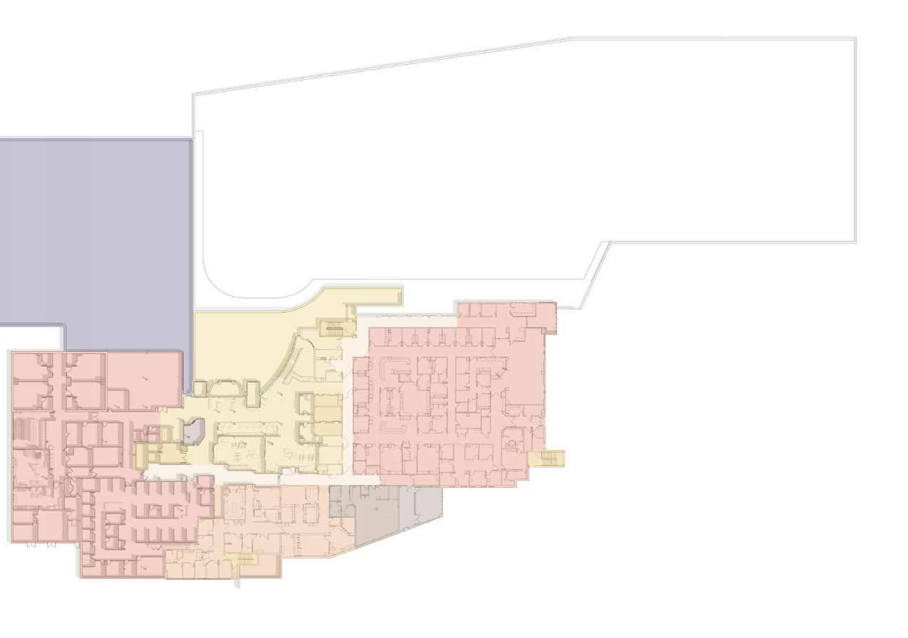 this portion of the building are nearly 40 years old, onsite selective demolition is required along with updated drawings to reflect the findings. Wall structure will remain in place until future phases to allow for ongoing hospital operations. To achieve this, minimal exterior demolition will occur outside of new construction connection points and