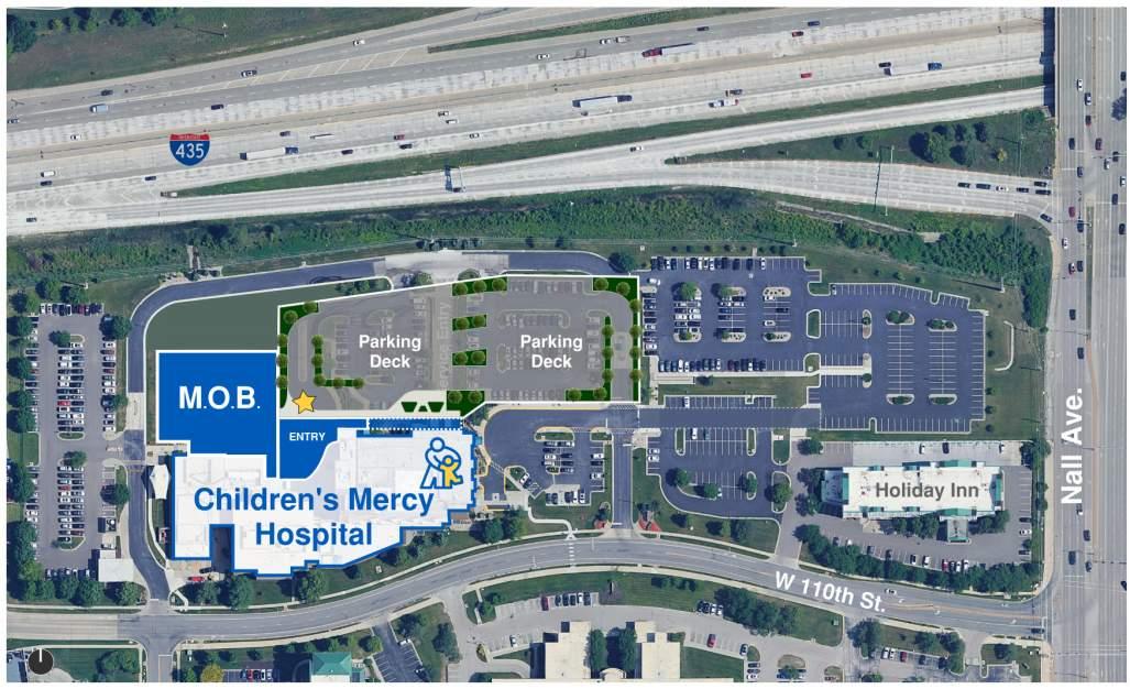 Sitting just on the Kansas side of the Missouri-Kansas state boarder, this campus was originally designed and construc education facility in the late 1980s. It has since been converted into use as a medical facility through multiple rounds o and alterations over its nearly 40-year history. My team was tasked with locating and designing a new Medical Office B refreshing the arrival and entry process along with serval phases of existing alterations to accommodate the new prog services being planned on campus. The addition and alterations will trigger an increase in required parking on site, wh solved with a new parking deck that will also help to separate the patient and staff flows on site and mask the service