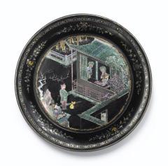 Description: A mother-of-pearl inlaid black lacquer dish, by Jiang Qianli, Qing dynasty, Kangxi period Expert remark: Compare the closely related inlay technique as well as the depiction of a scene from the Romance of the Western Chamber. Note that this dish is by the same artist, but is signed with a fourcharacter seal mark Jiang Qianli.