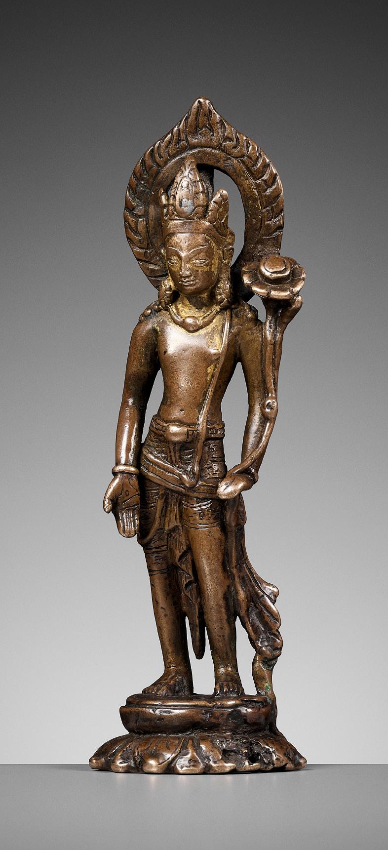 Leonardo Vigorelli is a retired Italian art dealer and noted collector, specializing in African and ancient HinduBuddhist art. After studying anthropology and decades of travel as well as extensive field research in India, the Himalayan region, Southeast Asia, and Africa, he founded the Dalton Somaré art gallery in Milan, Italy, which today is being run by his two sons. Condition: Excellent condition, commensurate with age. Extensive old wear, some casting flaws, small nicks and dents, few cracks, minor losses, signs of weathering and erosion overall. Fine, naturally grown patina with malachite and cuprite encrustations.