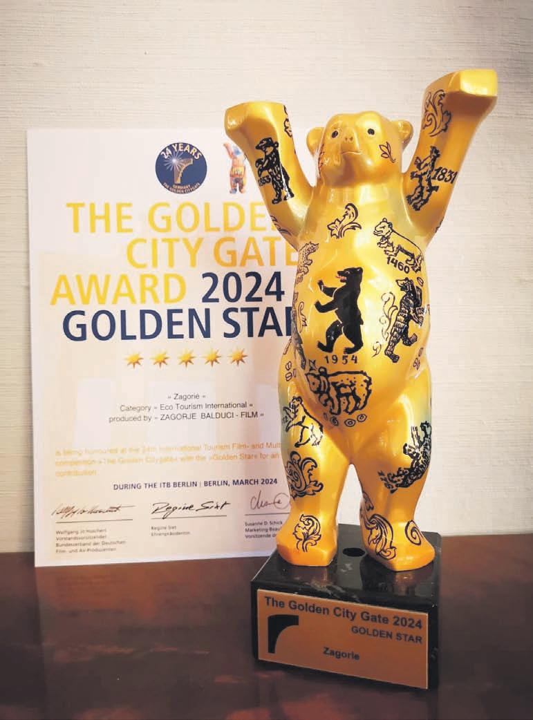 burze, dodijeljene su 24. The Golden City Gate Tourism Awards 2024. U kategoriji "Eco Tourism International" turistički promotivni film Zagorje - Bajka na dlanu je osvojio ZLATO! Novi promotivni film nastao je u produkciji tvrtke Balduči film, koja se bavi snimanjem isključivo turističkih filmova, u čemu imaju dugogodišnje iskustvo i više od 200 osvojenih nagrada. Redatelj filma je Francuz sa španjolskom adresom Herve Tirmarche, scenarij zajednički potpisuju Spomenka Saraga i Herve Tirmarche, producentica je Spomenka Saraga, a glumci Ksenija Pajić, Herve Tirmarche, Adam Končić, Iva Šimić Šakoronja te Marta, Petar i Matej Končić. U snimanju
