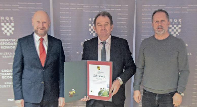 Župan Željko Kolar dosadašnjem predsjedniku Josipu Grilecu uručio je zahvalnicu za dugogodišnji doprinos razvoju gospodarstva na području Krapinskozagorske županije te za promociju županije u zemlji i svijetu