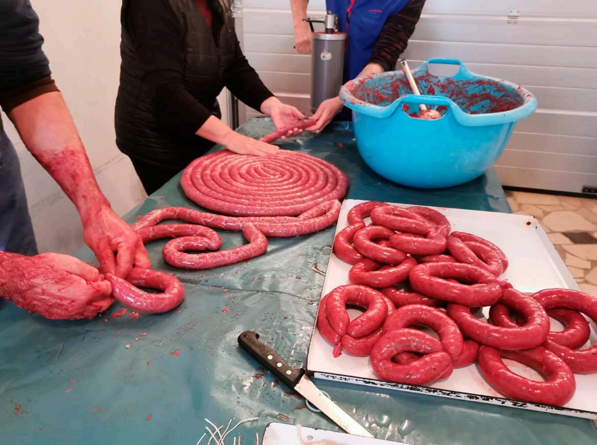 smo to znali raditi. Volim mesne proizvode, kupim meso i dam lju dima da mi osuše. Čvarke, krvavi ce ne radimo, nego kupimo. Nije isto tako fino kao domaće, ali mo že proći. Kako je, tako je.