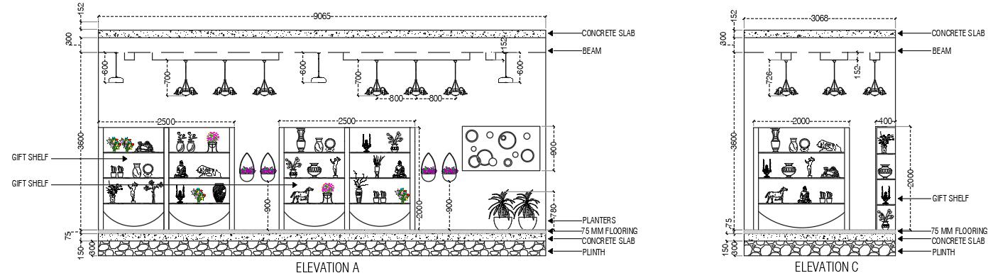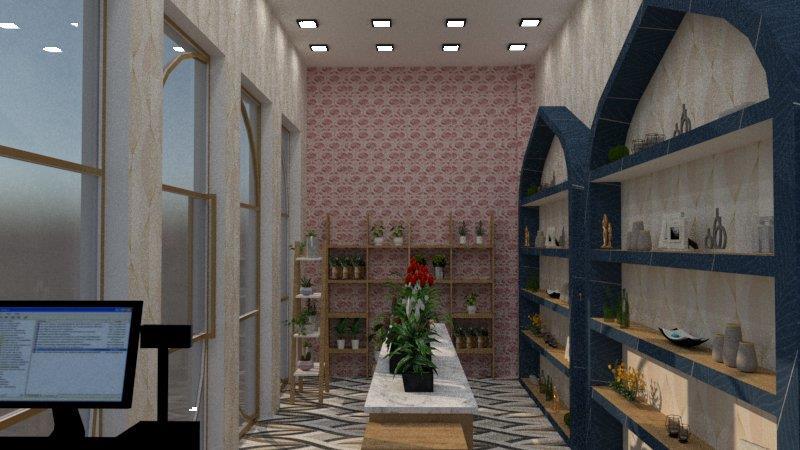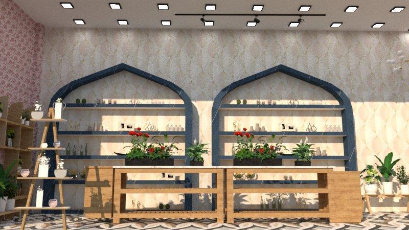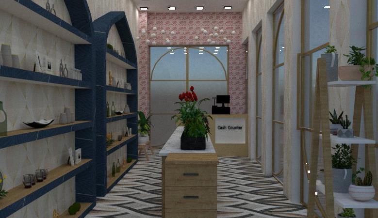 Main Concept is Arches, which is been used in the shelves as design. Accentuating these walls are striking geometric patterns in hues of Pristine color, adding depth and visual interest to the space. Crystal chandeliers hang from the ceiling, casting a soft, flattering glow over the shop.
