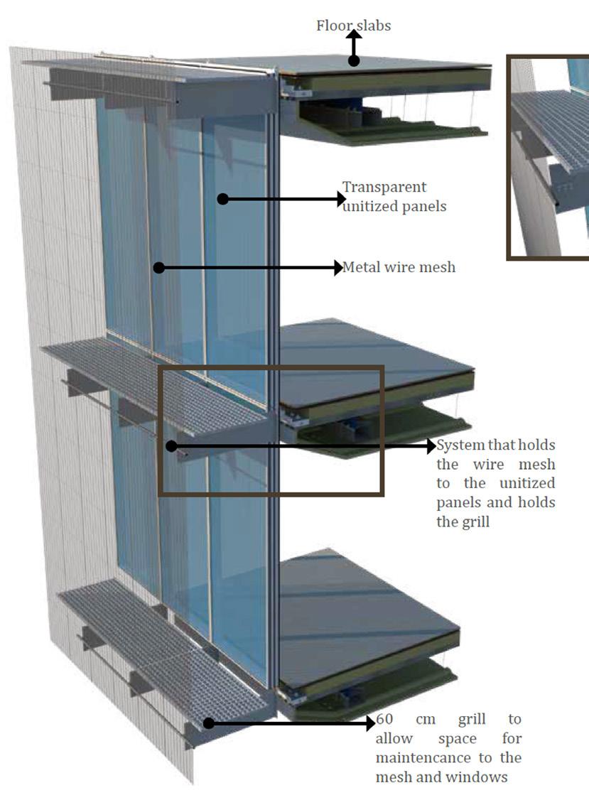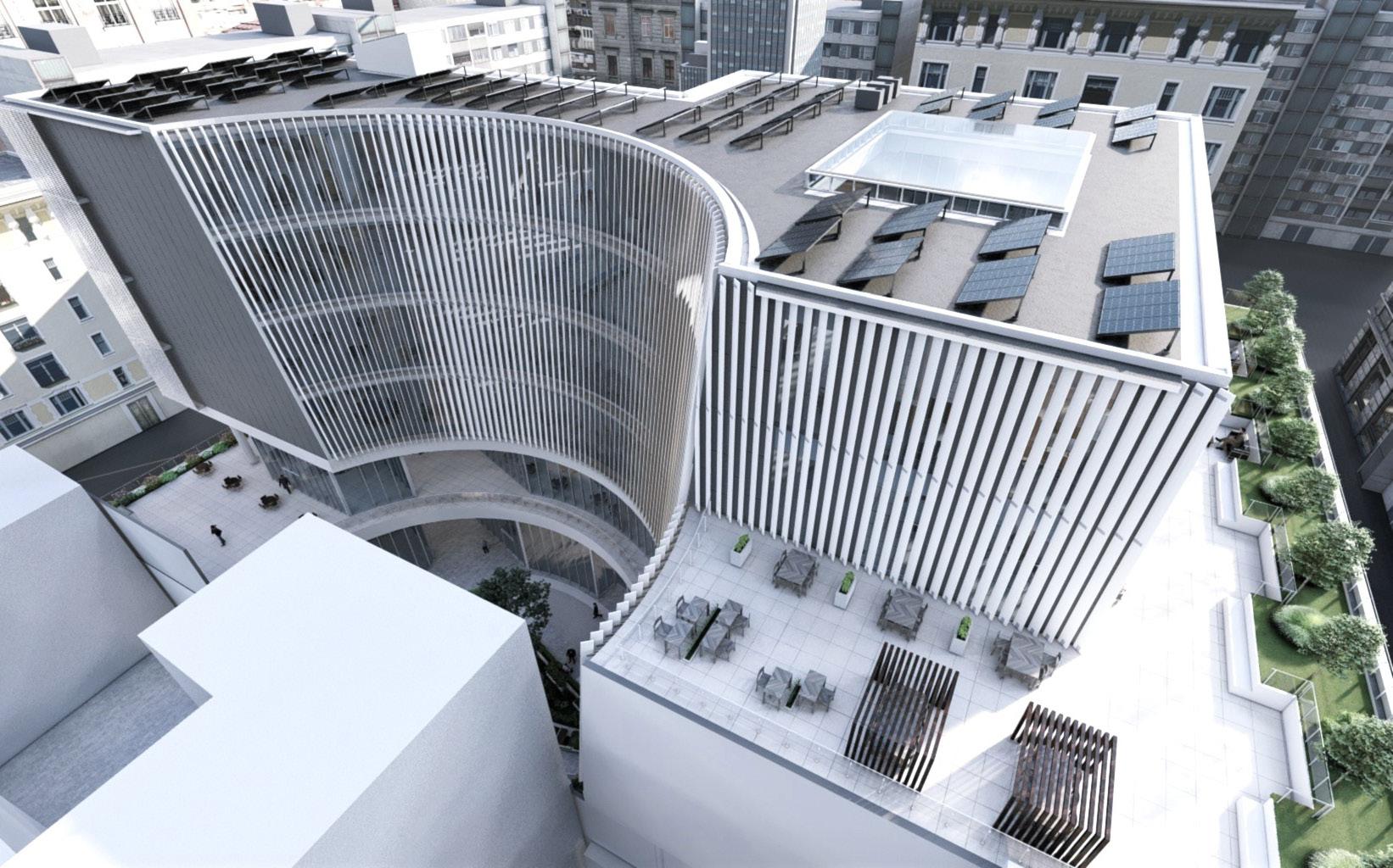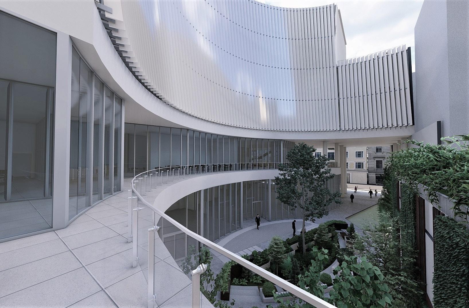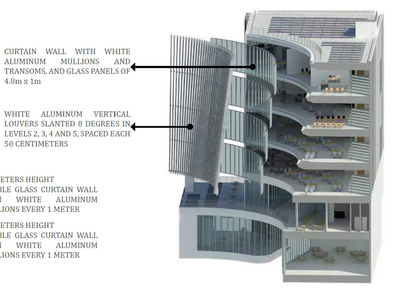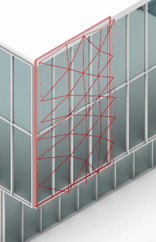 Transformation: The original facade of Building 3 is transformed into a curtain wall