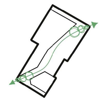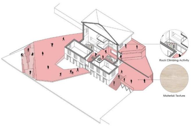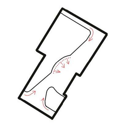 Inclined edges are tapered A new massing of push and pull is formed according to the functions.
