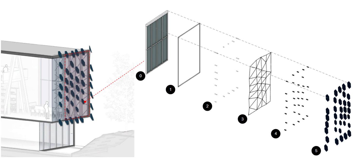Solymorph is an integrated kinematic building facade designed to optimize energetic behavior and architectural expression through individual modules. Installed on an existing library facade at Politecnico di Milano, Lecco, this case study demonstrates significant improvements in electricity generation compared to static photovoltaic systems.