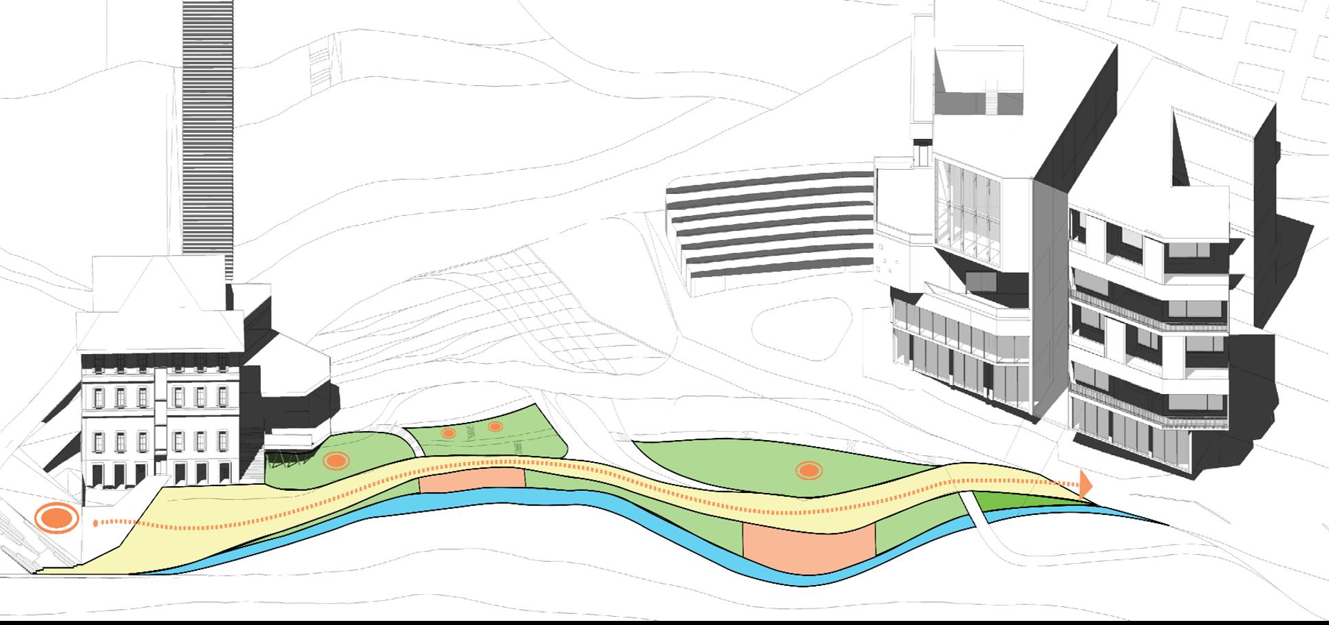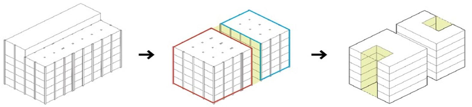 Existing: Building 4 Subtraction: Removing the original staircase. Organizing different uses (restaurants and observatory).