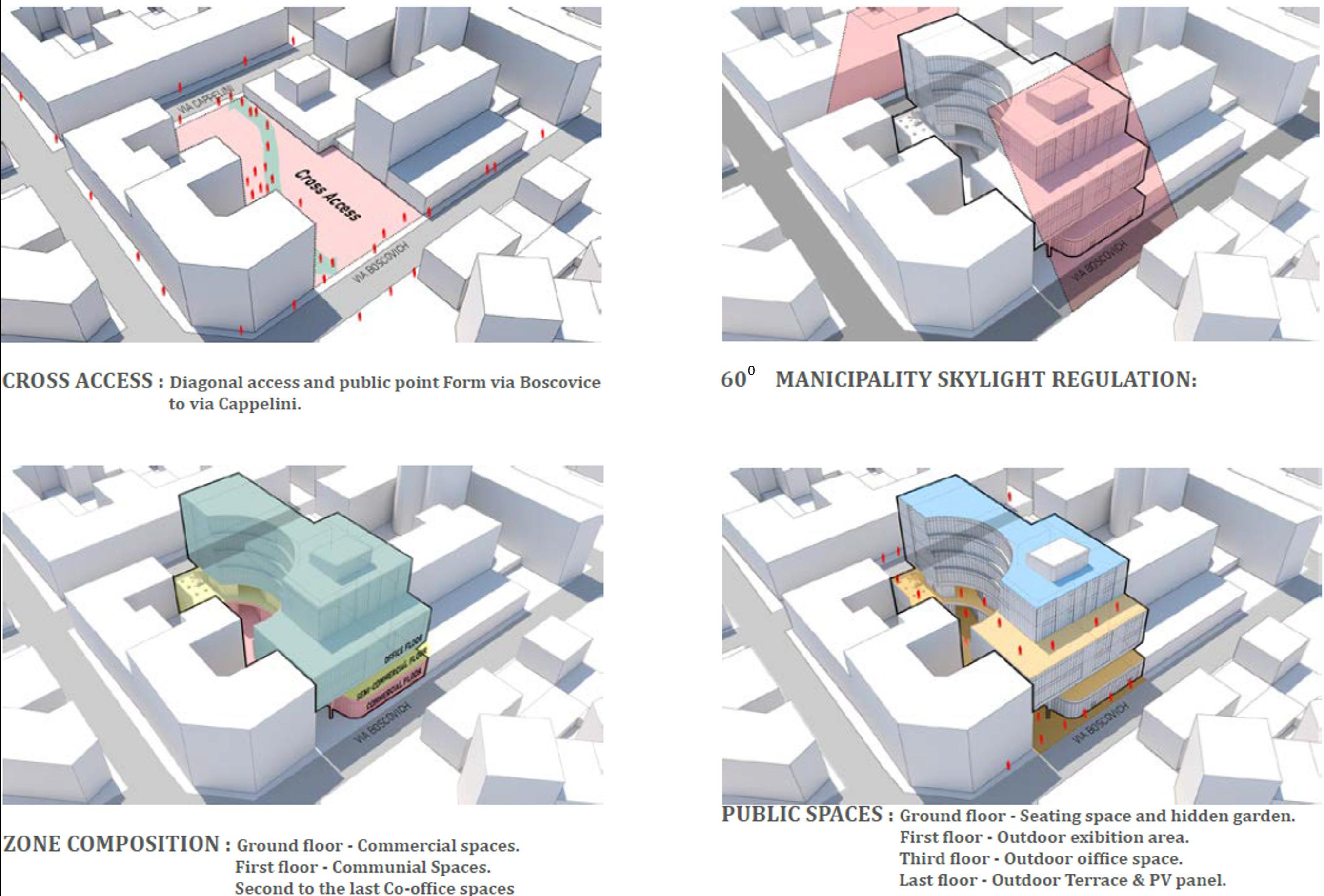 To enhance site permeability, two main nodes were connected via a central path: the historical Sanctuary of San Camillo de Lellis with its adjacent plaza, and the expansive, socially active area of Porta Nuova.
