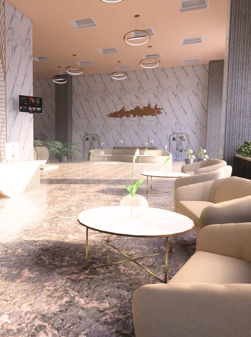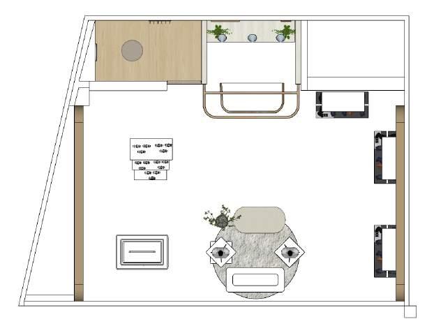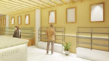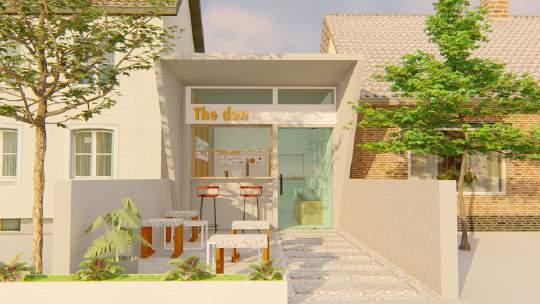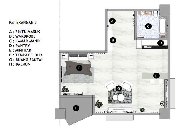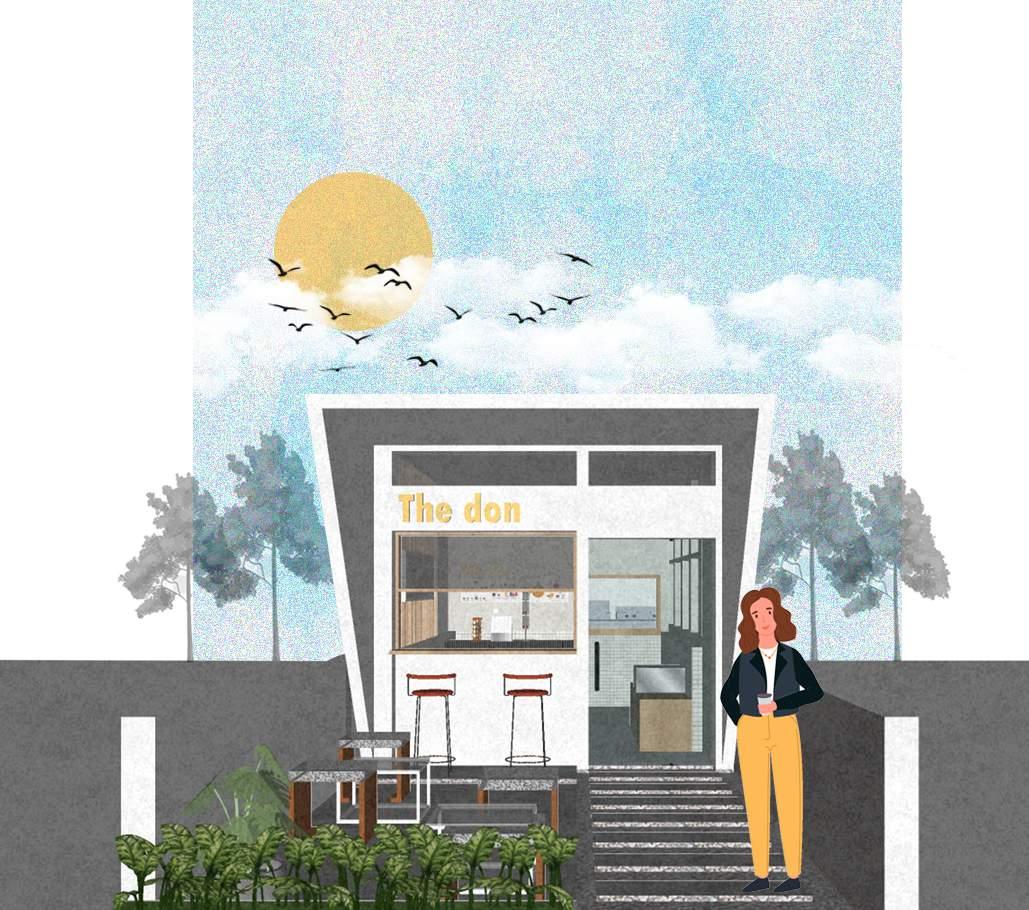 A coffee shop is a place that provides coffee and other drinks in a relaxed atmosphere, a comfortable place to do activities together, in order to increase togetherness. By using a modern concept, there is a touch of neutral HPL wood and white for the wall accompanied by a combination with granite floors for the interior area.