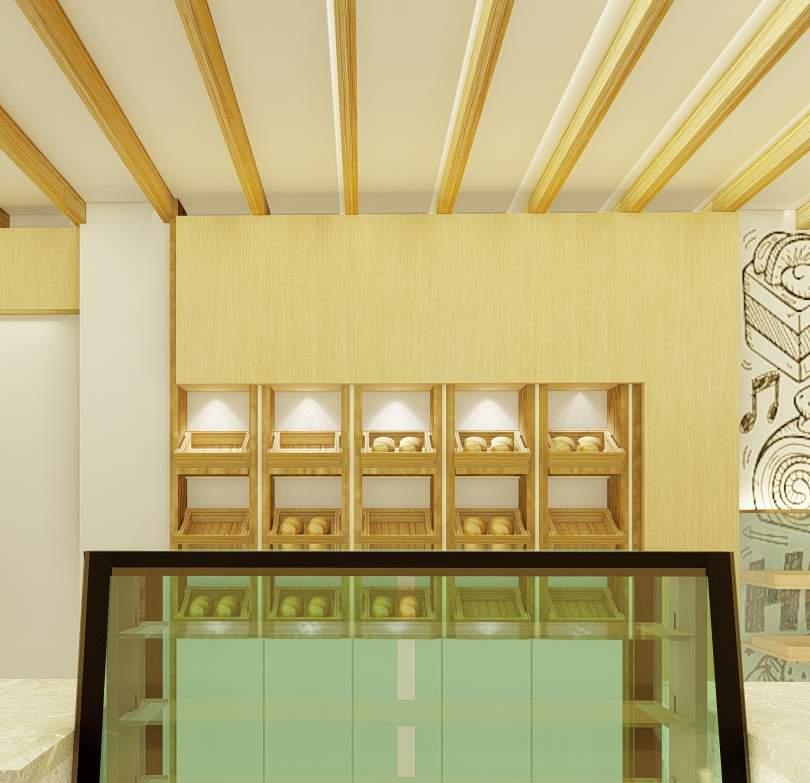 This bakery project uses a modern natural concept, where there are natural materials such as wood for some elements and a combination with marble to make it look more beautiful and luxurious.