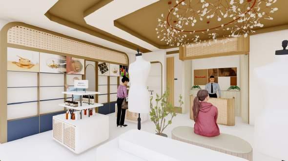 This duty-free relocation project is located in the airport area soetta terminal 3, with a slightly wider size but still using the concept of 'sarinah' where there is still using the nusantara element with a more modern concept such as using wicker, besides that it also uses natural materials such as wood for some elements, using concrete for some walls, as well as a more efficient layout of the area.