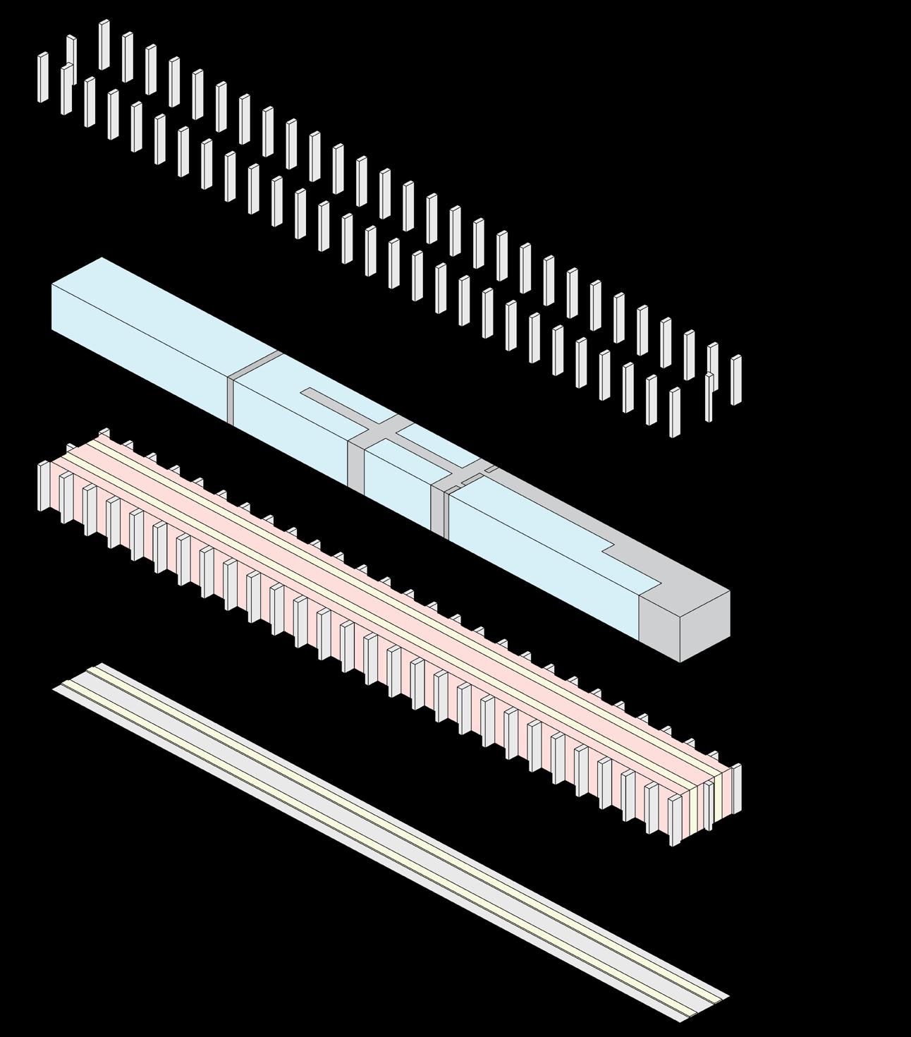Extruded mass 3. Subtrction to the mass to cre ate dynamism 4. Ramp for universal design and creating interesting spaces with it. 5. Column Grid used for structural frame work