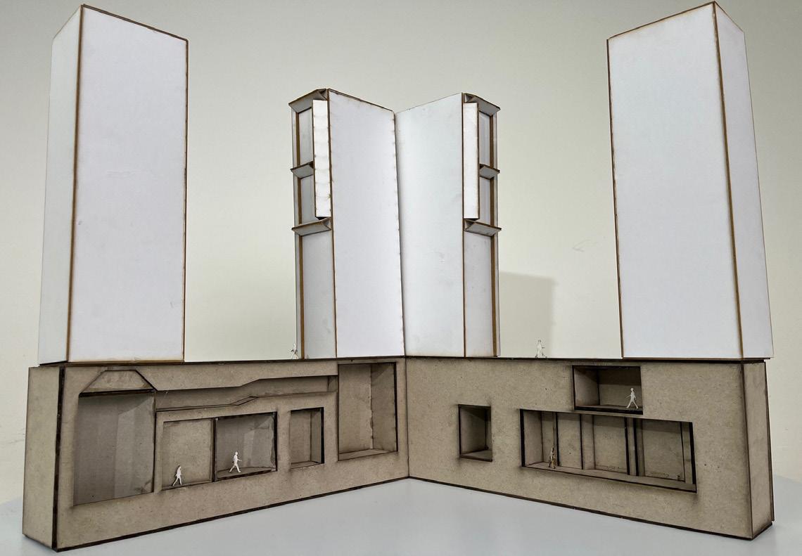 The Depository is an auction house and gallery that explores architecture as both subject and container as a curated space where models, fragments, and relics are exhibited and sold. Influenced by John Soane’s spatial complexity and the formal density of the Bank of England, the project is defined by layered interiors, carved display walls, and a crafted brick façade composed of overlapping arches. Conceived as a civic archive, the building invites discovery through controlled thresholds, atmospheric voids, and a narrative of architectural memory.