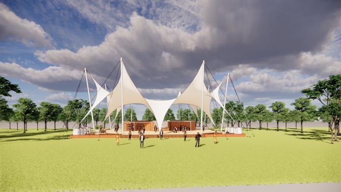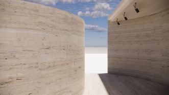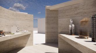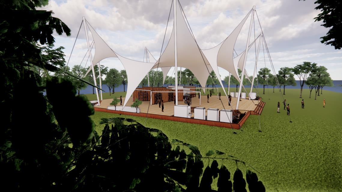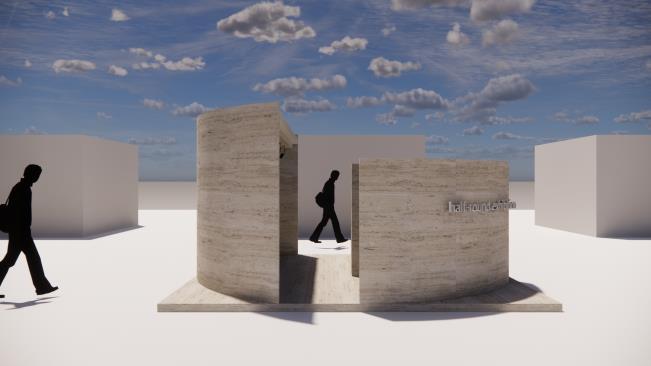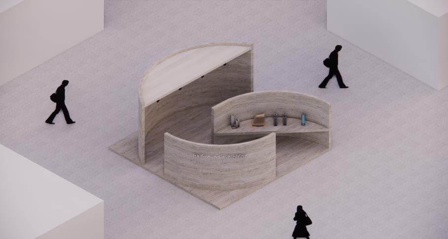 half round pavilioun Students were asked to make an architectural exhibition located at the plaza binus orchid kemanggisan With an area of 25m2. and the maximum floor is 2 floors This architectural exhibition is temporary or temporary Requested to use materials that are flexible and easy to assemble and disassemble Project Background Legends a. Wall of Poster b. Maket Project Space c. Entrance a b c built area transform into half roundextrude mass cut into 3 I shape Space Program Massing Development Location Project Requirement Pavilioun Plaza Binus Anggrek Kemanggisan Grcboard Motif Travertine Lamp spotlight Sections 3D Render