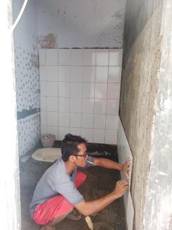 Progress Week 6 (31 Agustus 2022) Installation of pasted bricks on the front facade and interior work on the kitchen and toilet sections