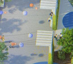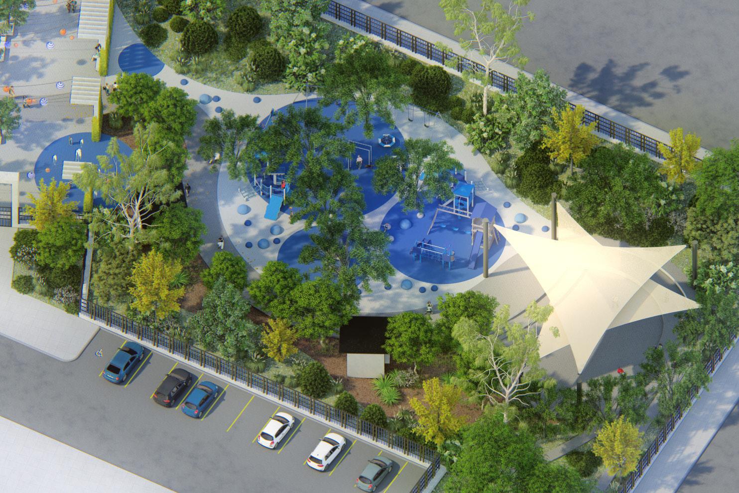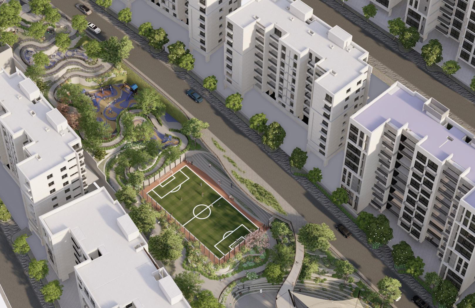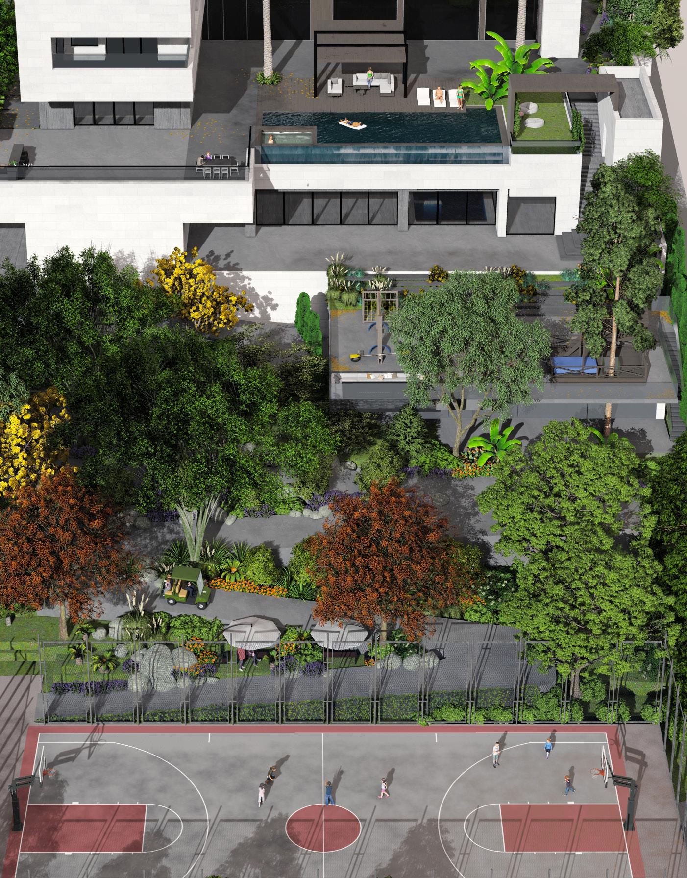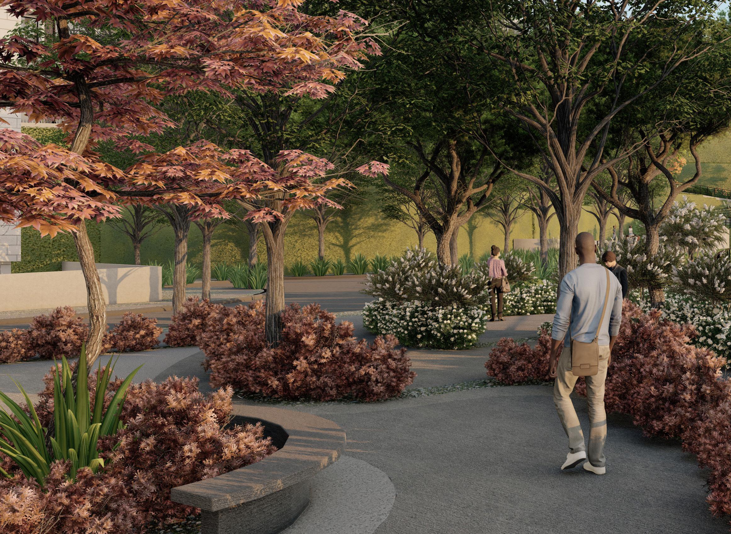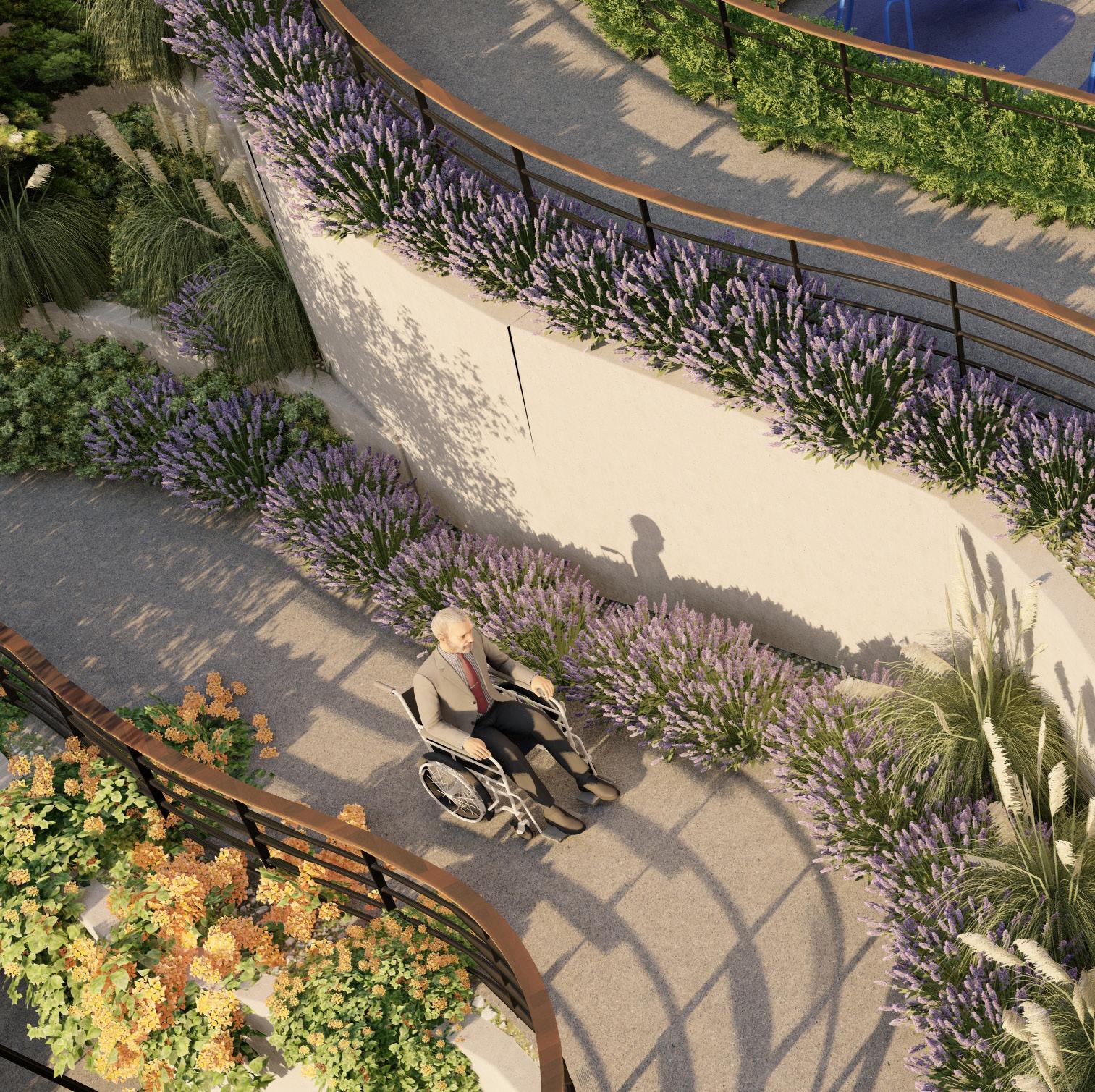 The design effectively connects entrances at different levels, ensuring smooth transitions between areas and offering an engaging journey for residents as they move through the park.