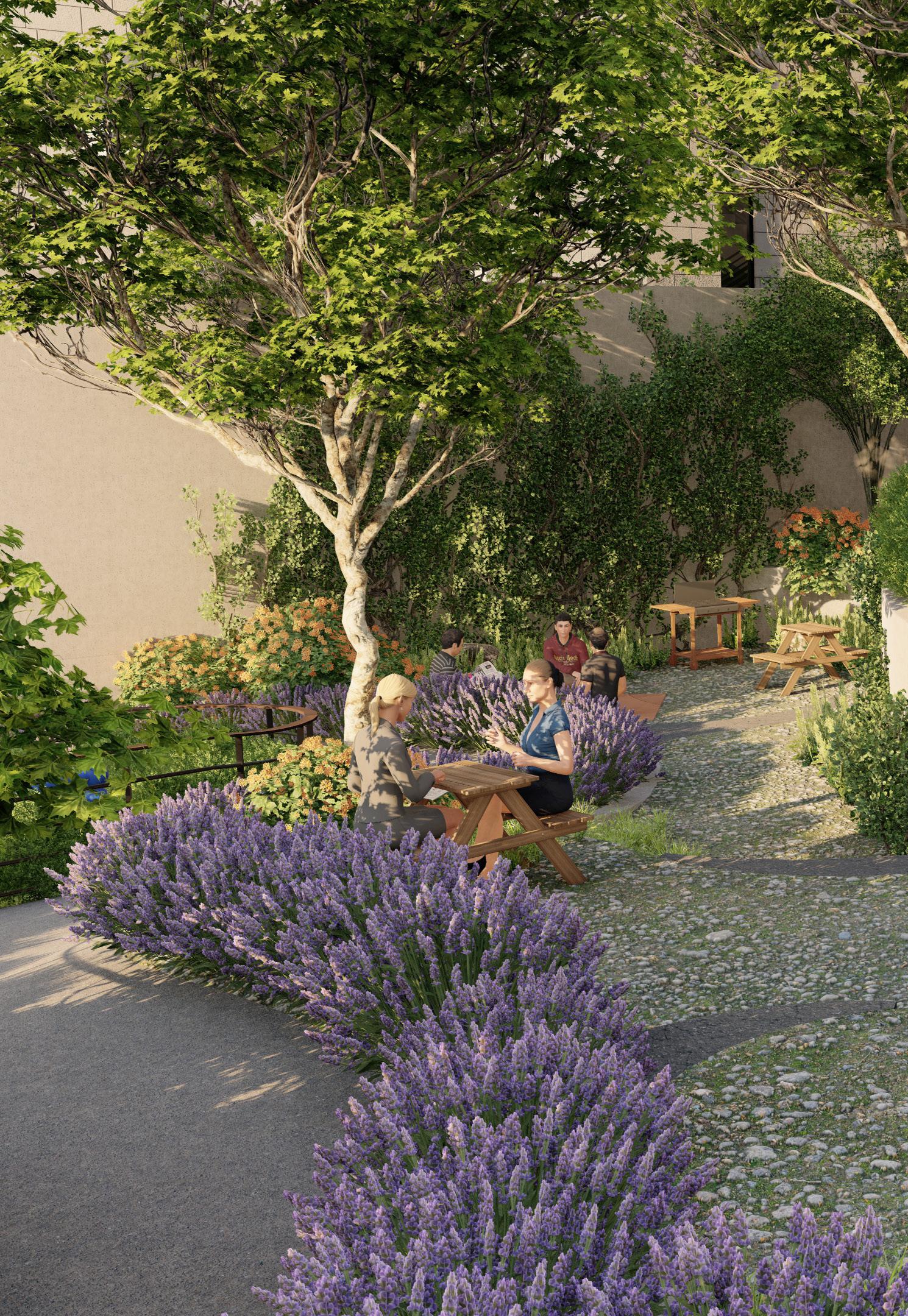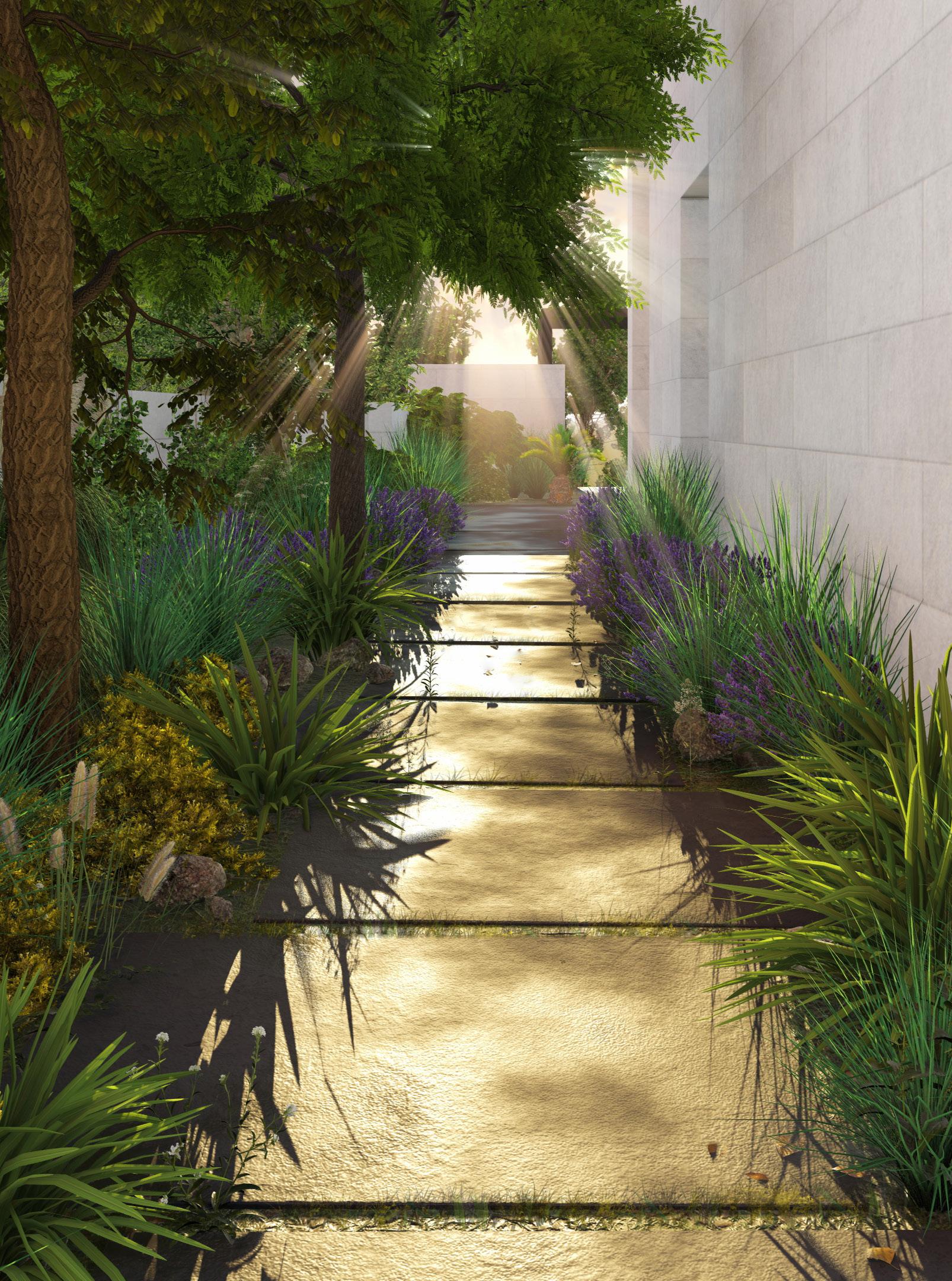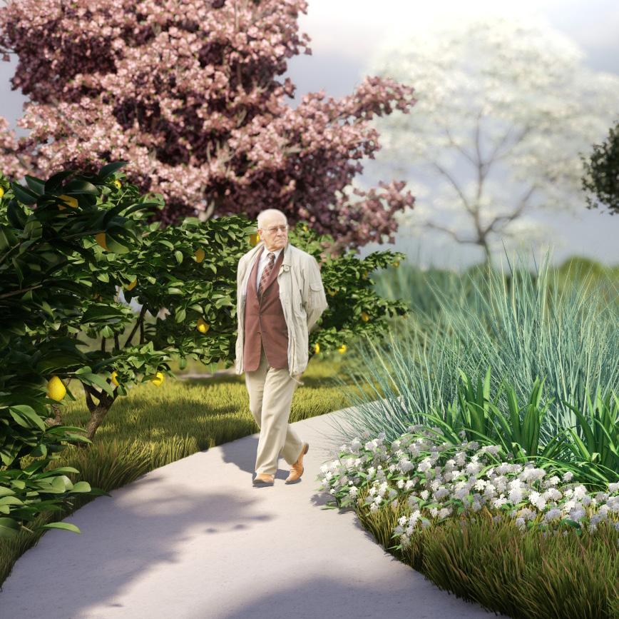 Each section of the path is designed to offer a unique perspective of the farm, enhanced by subtle variations in plantings, textures, and views.