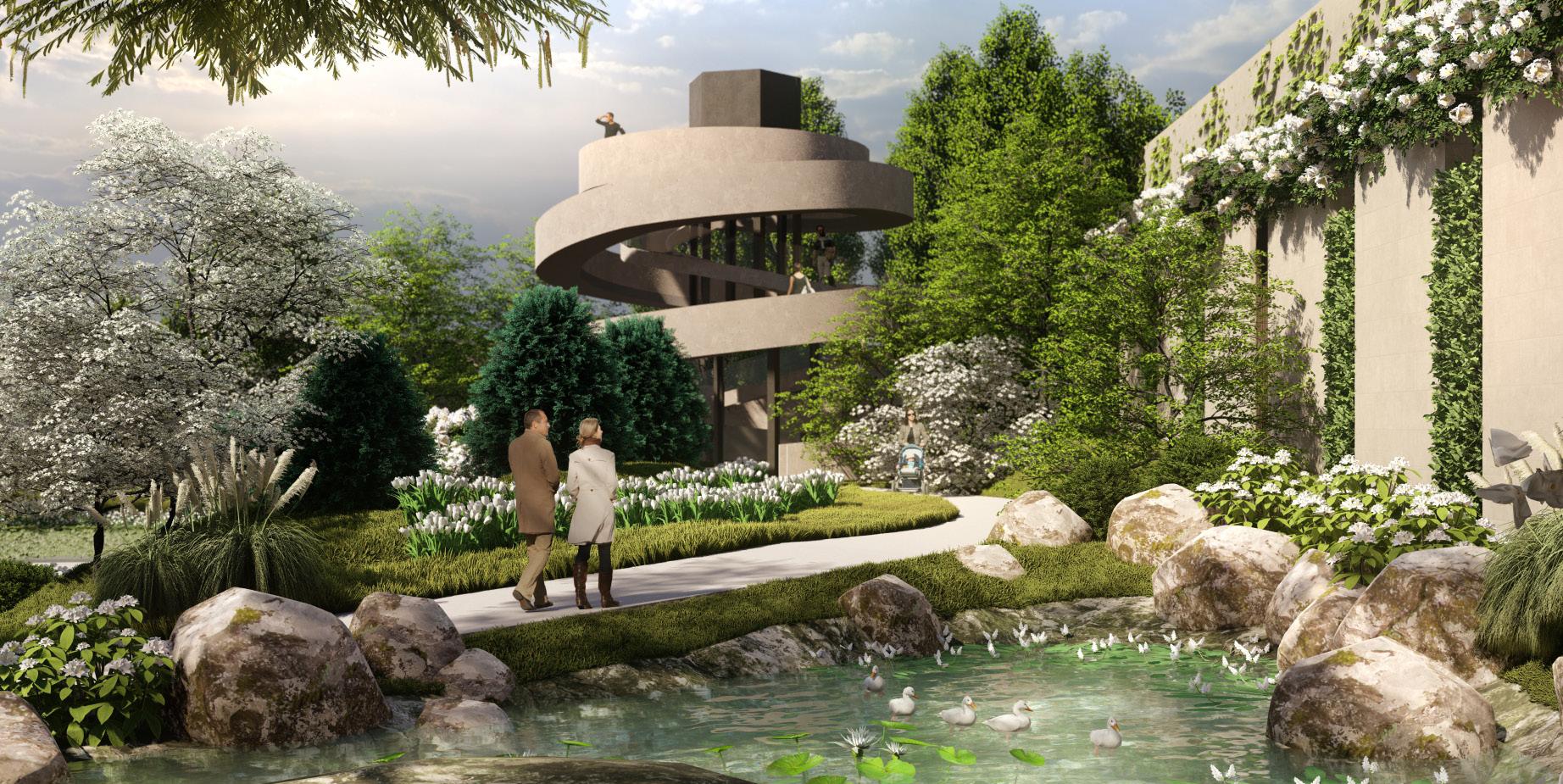 The park’s design incorporates spiral walkways that traverse the varied terrain, transforming the challenging slopes into an asset rather than a limitation. These pathways create a series of terraces and meandering routes that offer different perspectives and experiences throughout the park.