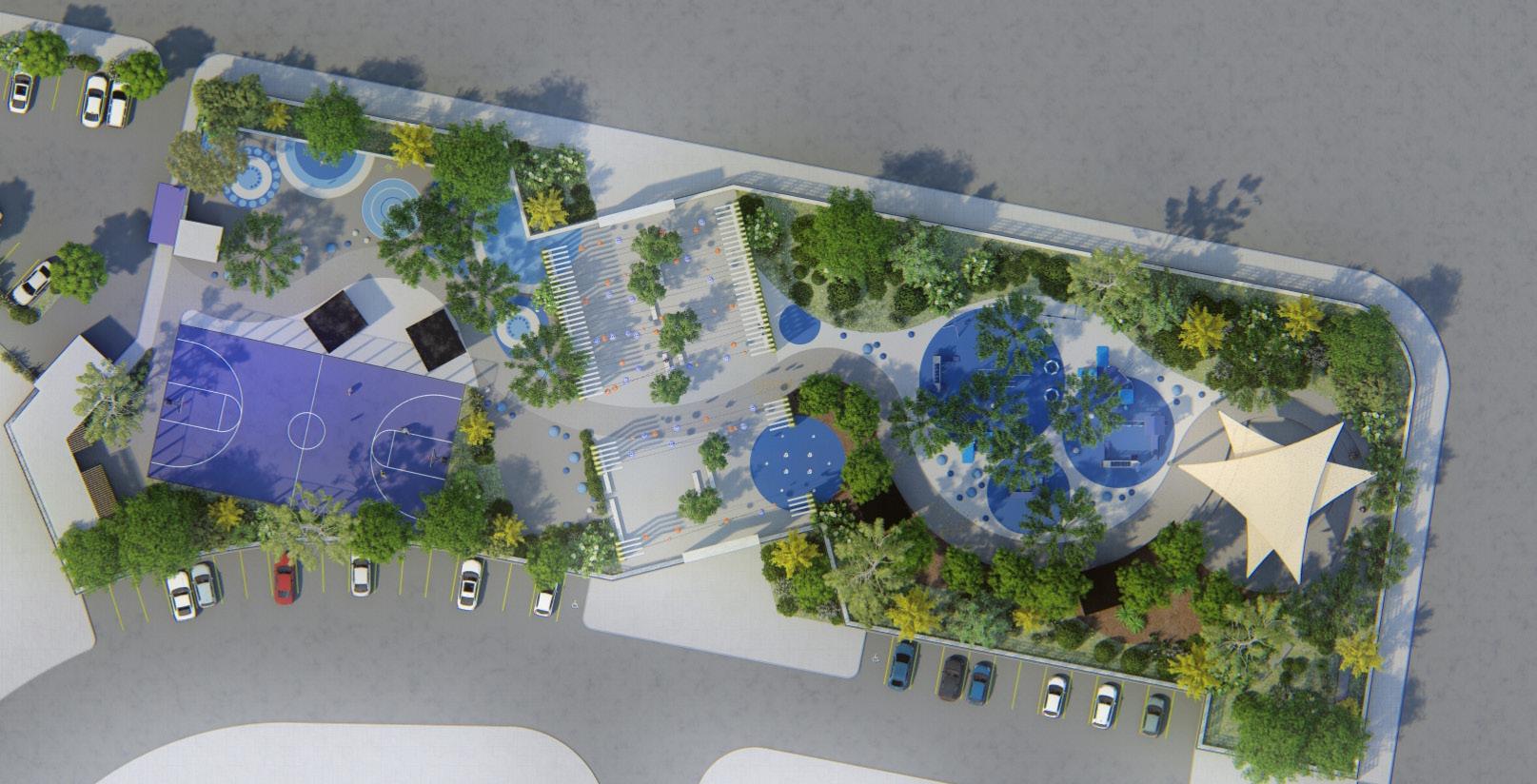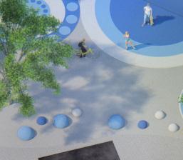 This project involved designing a public neighborhood park commissioned by a leading bank in Jordan. The central design concept was inspired by the bank’s corporate identity, particularly its signature shades of blue. To bring life and vibrancy to the space, we carefully selected varying blue hues for key elements